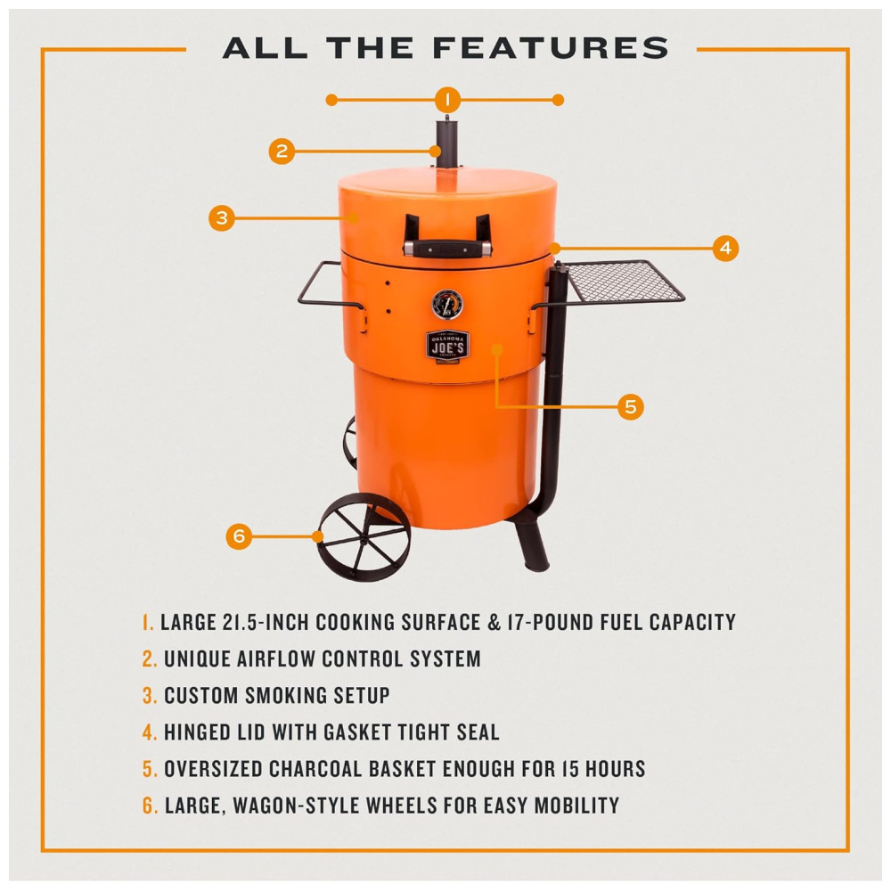 Defumador de Tambor a Carvão com Medidor de Temperatura Oklahoma Joe s 19202100 Laranja