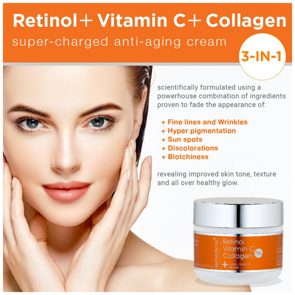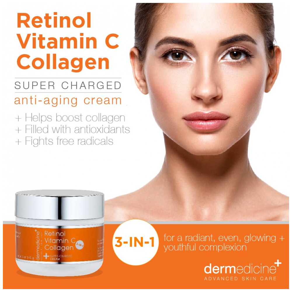 Dermedicine Creme Dacial Anti Idade com Vitamina C Retinol e Colágeno para Mulheres