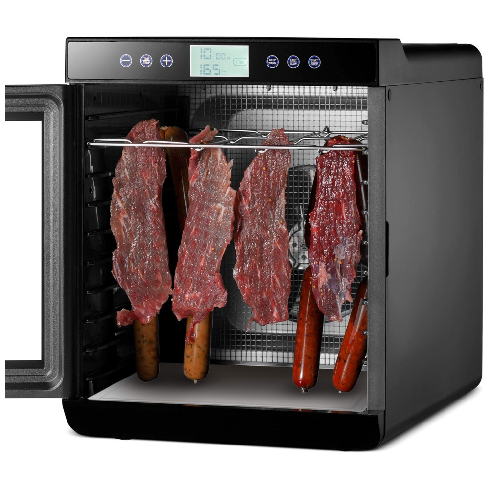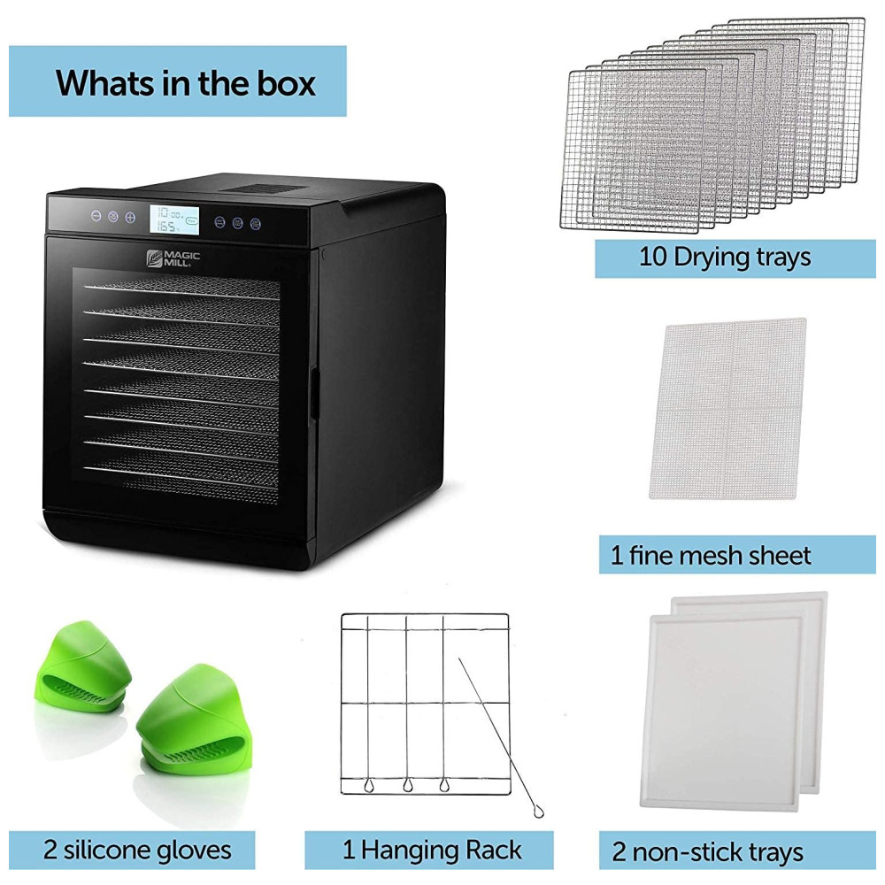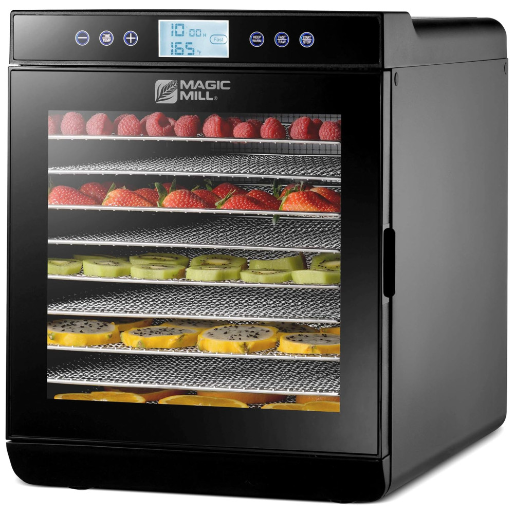 Máquina de desidratador de alimentos Magic Mill temporizador digital ajustável Controle de temperatura Manter a função quente Secador de carne seca, erva, carne, carne, frutas e legumes secos 10 bandejas de aço inoxidável