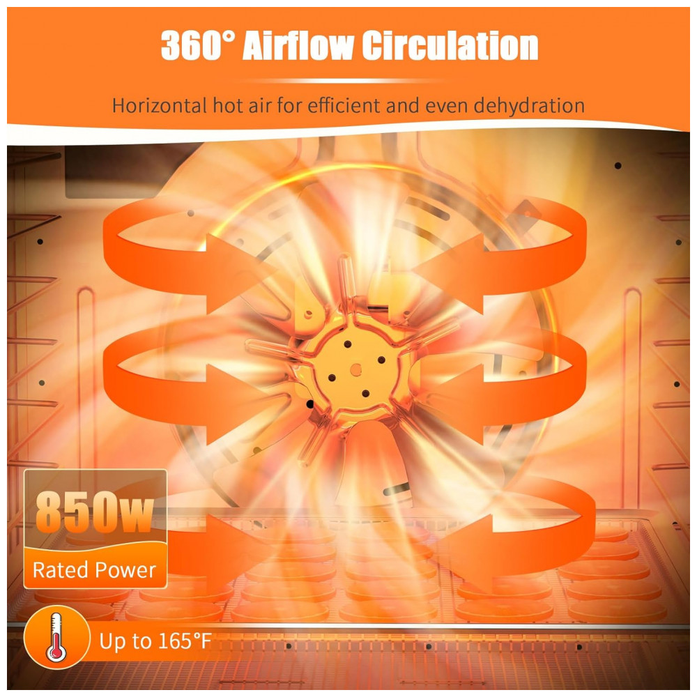 Com capacidade de 14 bandejas ajustáveis em aço inoxidável, este desidratador para jerky permite que você seque grandes lotes de frutas, legumes, carnes e ervas simultaneamente. Sua generosa capacidade é perfeita para porções familiares ou desidratação em grande escala, poupando tempo e esforço. Oferece 10 opções pré-definidas para diferentes alimentos, como maçãs, mirtilos, tomates e carne, permitindo ajustar o tempo de secagem de 1 a 48 horas e a temperatura de 95 a 165°C através do painel de controle LED para desidratação personalizada, ideal para jerky e vários outros petiscos. O potente motor de 850W combinado com ventiladores traseiros e tecnologia de circulação de ar 360 garante uma desidratação uniforme e rápida. A construção robusta em aço inoxidável oferece durabilidade de longa duração, enquanto as bandejas livres de BPA são seguras para lava-louças, garantindo uma limpeza sem complicações. Completo com 14 bandejas, 4 telas de malha, uma folha para preparo de frutas e um livro de receitas, este desidratador de alimentos é um pacote completo para começar a desidratar imediatamente, sendo uma ferramenta versátil para qualquer cozinha.