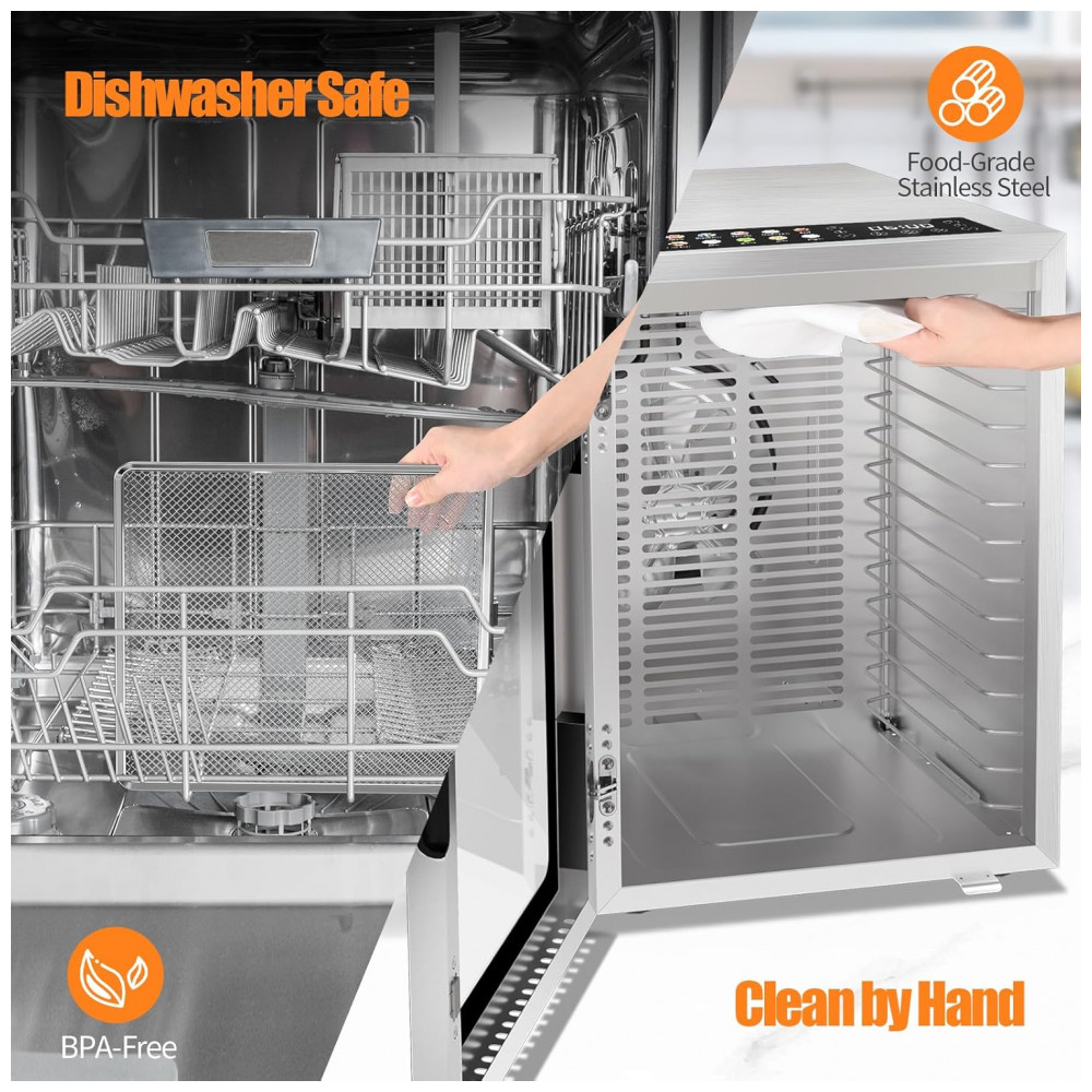 Desidratador de Alimentos 14 Bandejas em Aço Inoxidável 10 Configurações Pré-definidas com Temporizador de 48H e Controle de TemperaturaYASHE