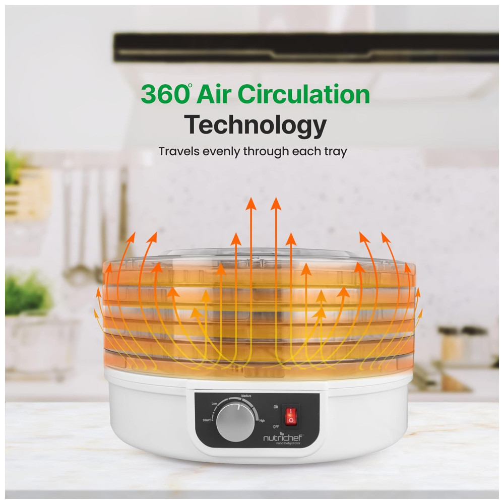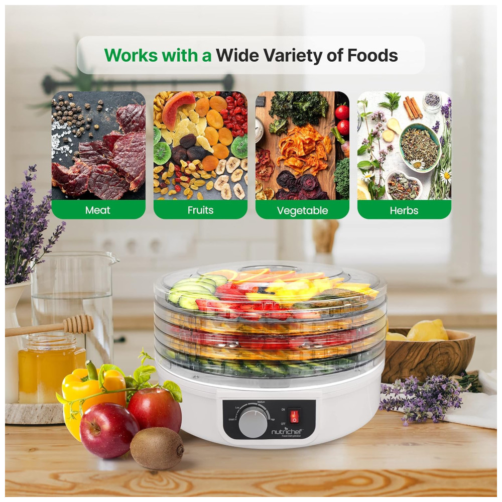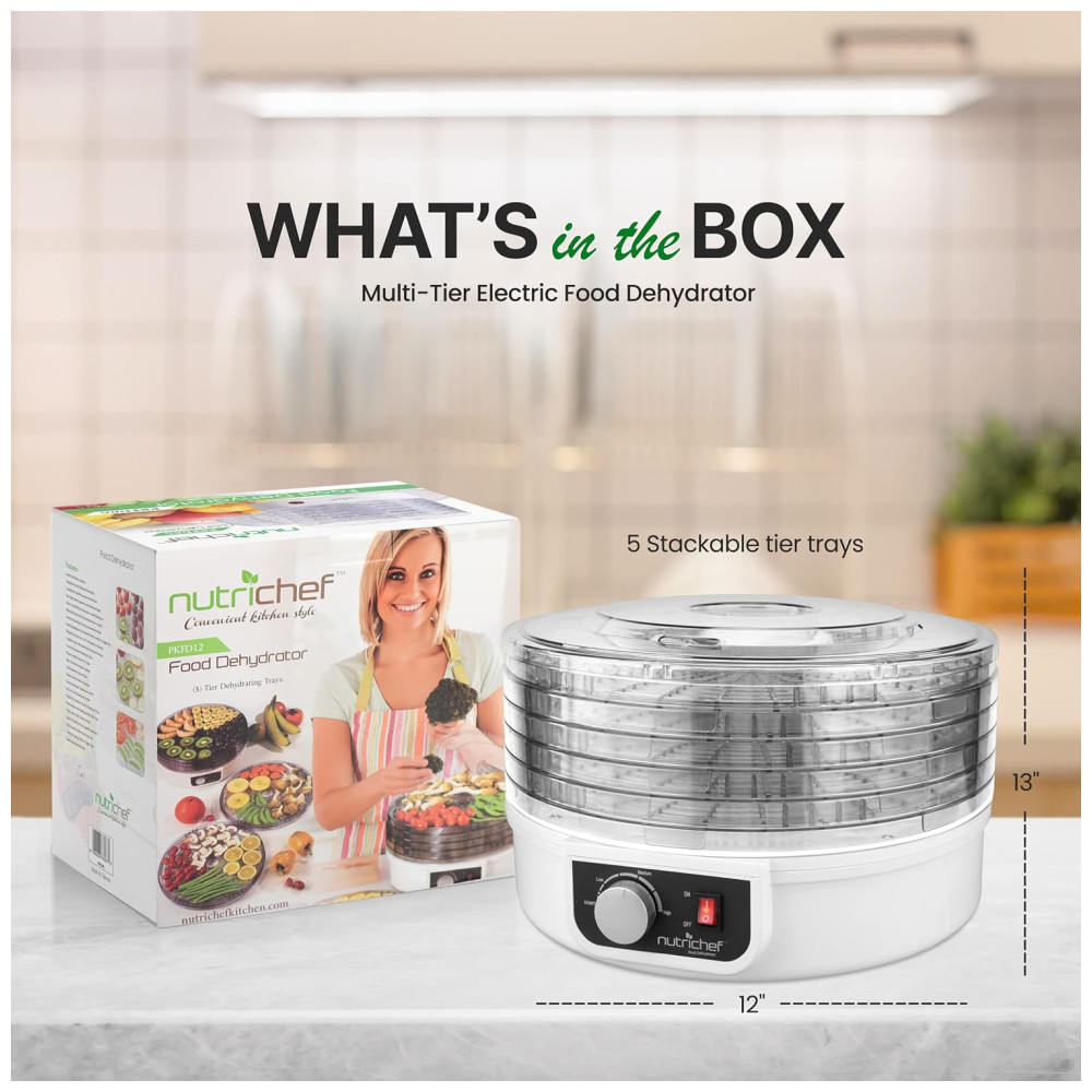 Cor Branco NutriChef Modelo PKFD12 Desidratador de alimentos de bancada Desidratador de alimentos de bancada elétrico, Conservante de alimentos branco Características Aparelho de cozinha de várias camadas desidrata alimentos para preservação aprimorada Alternativa eficiente à desidratação de alimentos seca eficazmente os alimentos, removendo o conteúdo de umidade Ótimo para zenamento de alimentos a secagem faz com que os alimentos encolhem Reconstituição de alimentos os alimentos absorvem água e incha ao tamanho