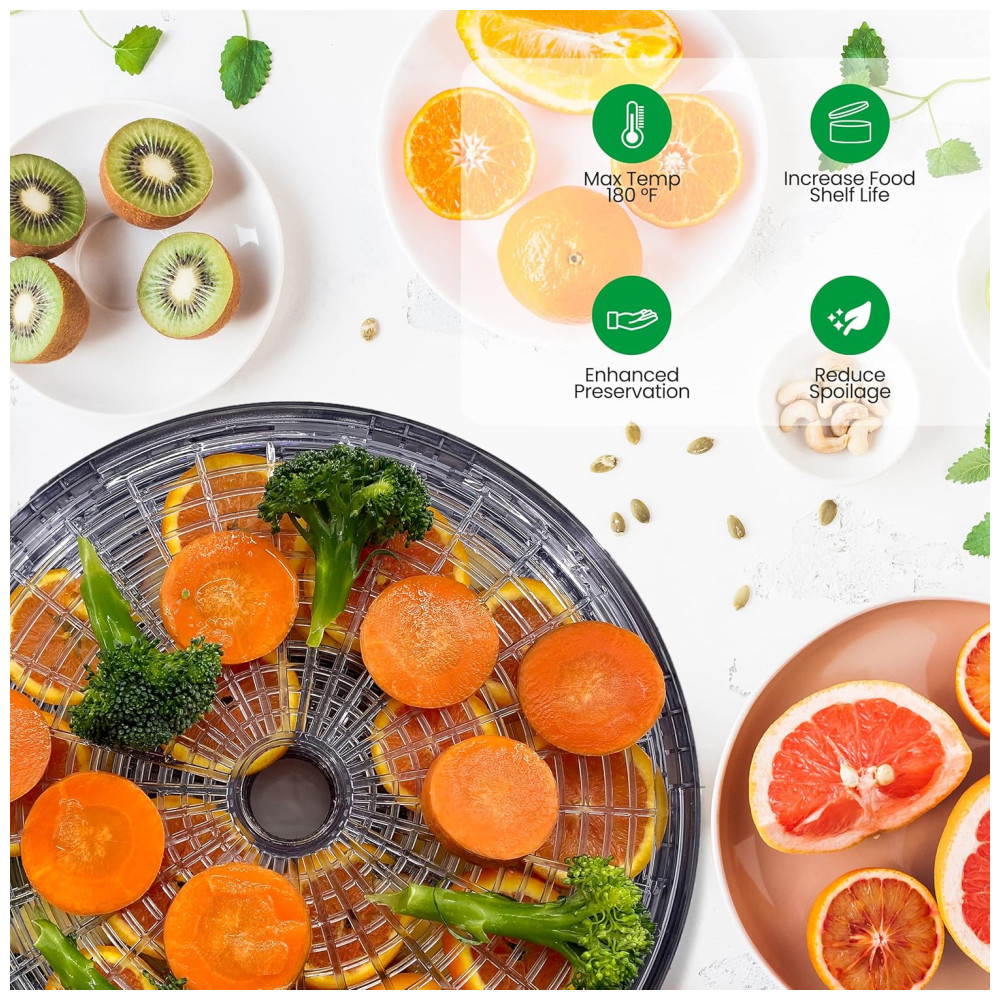 DESIDRADOR PROFISSIONAL DE ALIMENTOS Um desidratador elétrico profissional de vários níveis que pode preservar variedades de alimentos. Também produz alimentos nutritivos com uma preparação muito simples. Com este item, nenhum alimento estragará e será desperdiçado com este conservador de alimentos PROCESSO FÁCIL DE ACESSO E OPERAÇÃO Este item foi desenvolvido para facilitar a preparação de alimentos com um botão operacional fácil de usar. Simplesmente escolha desidratar com apenas um clique. Ele também possui um sistema de controle de temperatura com no máximo 180 Graus BANDEJAS EMPILHÁVEIS Ele também vem com 5 bandejas empilháveis removíveis ou bandejas de secadores. Essas bandejas também podem ser usadas para secar alimentos sem o uso do desidratador. As bandejas são removíveis e podem ser facilmente limpas, incluindo a máquina de desidratação PRESERVE FOOD Este desidratador usa controle de temperatura para preservação de alimentos. Ele pode desidratar e preservar a carne como o infame espasmódico de carne. Também fabrica lanches saudáveis orgânicos, desidratando frutas, vegetais e fazendo batatas ou couve, etc. CIRCULAÇÃO DE CALOR Isso é cientificamente testado para aumentar a vida útil dos alimentos com alta circulação de calor que percorre cada bandeja. Seque efetivamente os alimentos, removendo o teor de umidade, diminuindo os alimentos, mas ainda retendo 97 das vitaminas e minerais
