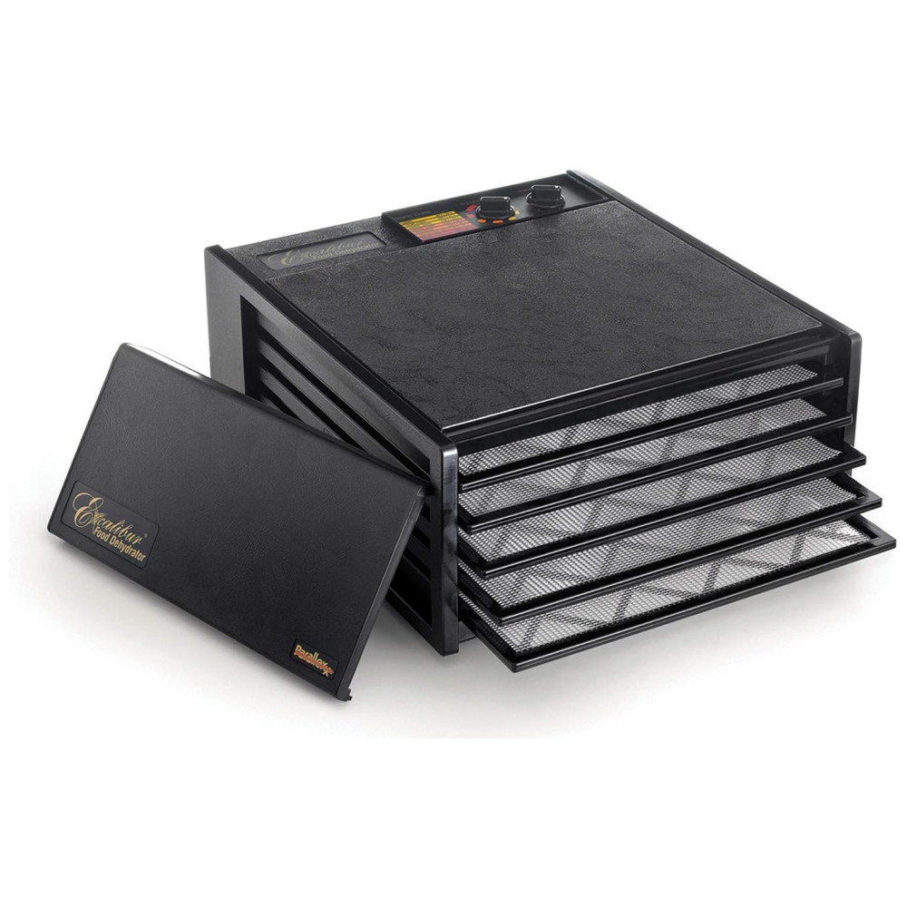 Desidratador de alimentos elétrico Excalibur 3526TB com 5 bandejas com configurações de temperatura e desligamento automático com timer de 26 horas para uma secagem mais rápida e eficiente, preto
