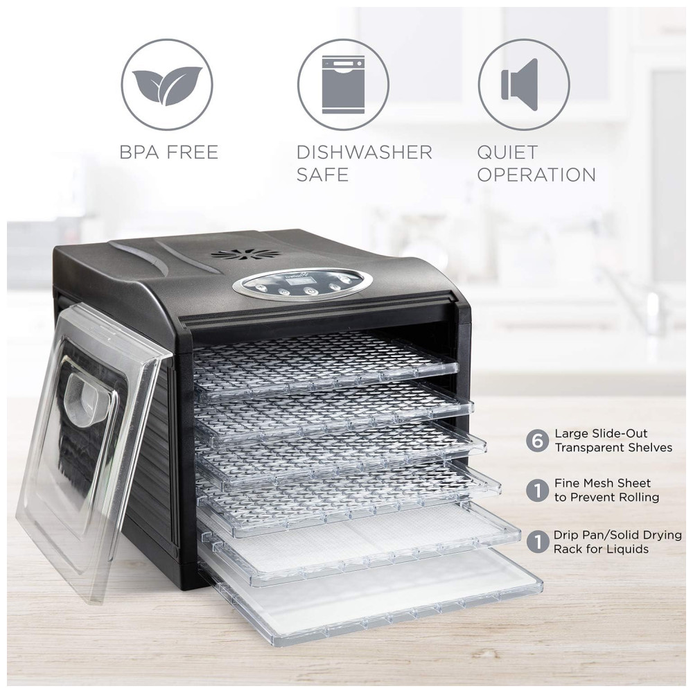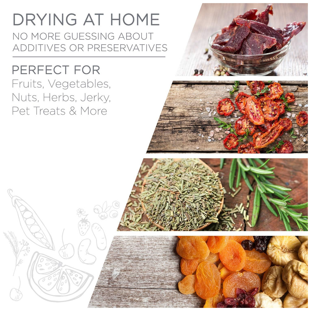 Desfrute de lanches saudáveis caseiros e fáceis, sem aditivos ou conservantes, a uma fração do custo de alimentos mente desidratados perfeito para secar fatias de frutas, ervas secas de longa duração, deliciosos espetos de carne e mais, também uma maneira econômica de preservar alimentos de trás para a frente O ventilador montado foi projetado para promover uma secagem uniforme com fluxo de ar ideal sem superaquecimento, e um termostato ajustável com temporizador de desligamento automático garante que os alimentos sejam desidratados em temperatura e nitidez ideais 6 racks de secagem ajustáveis e espaçosos 13 X 12 acomodam uma ampla Variedade de frutas, ervas, legumes e carnes, ideal para famílias grandes, jardineiros, esportistas, amadores de atividades ao ar livre, entusiasta da saúde O termostato digital possui oito níveis de temperatura de 30 a 70 graus, inclui 1 folha de malha fina antiaderente para secagem Alimentos pequenos como ervas, 1 folha sólida para fazer roll ups de frutas, proteção de segurança contra superaquecimento, está em conformidade com os regulamentos de segurança elétrica dos EUA, ETL, dimensões do produto 17. 71 x 13,58 x 12,40 polegadas