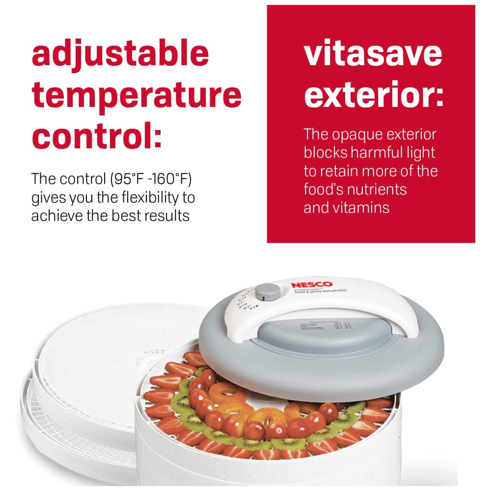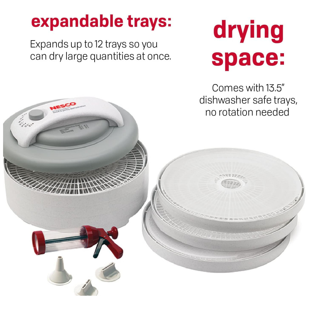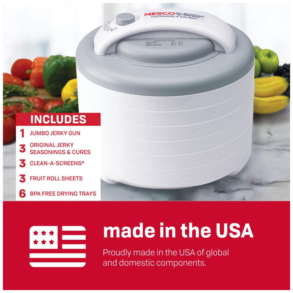 NESCO FD 61WHCK, Desidratador de Alimentos com Jerky Gun, Branco, 6 bandejas, 500 watts