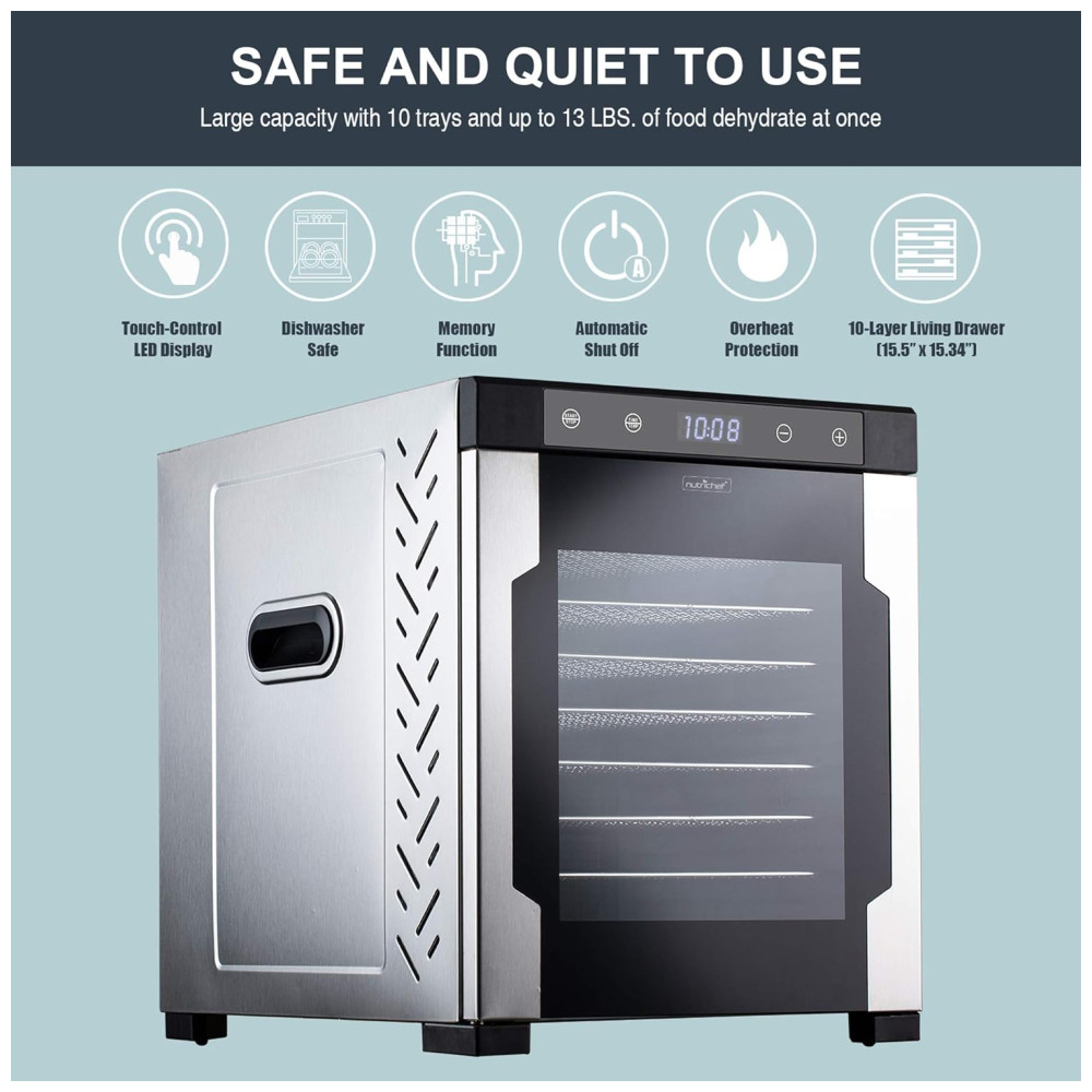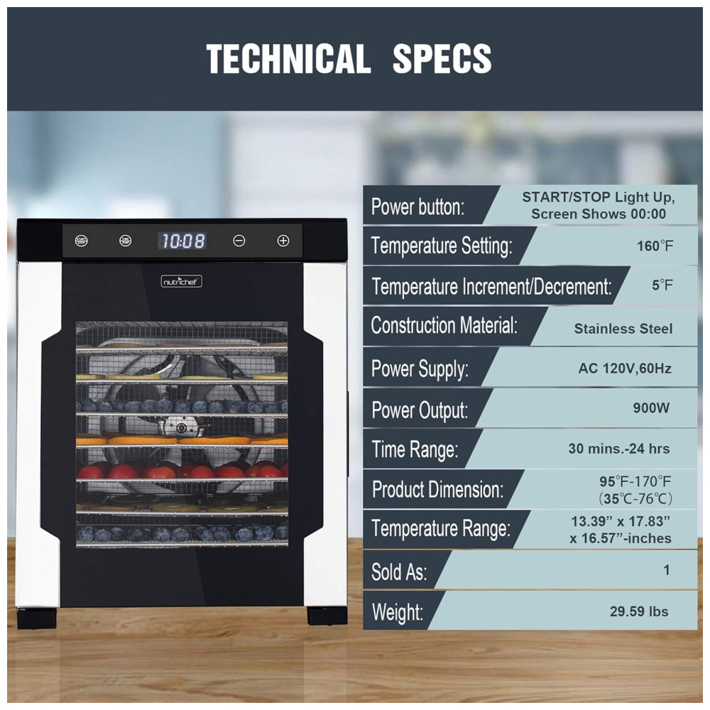 Desidratador de Alimentos com 10 Bandejas em Aço Inoxidável 110V 900W NutriChef