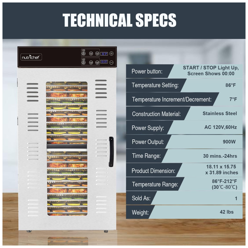 Desidratador de Alimentos com 20 Bandejas 2000W 110v NUTRICHEF NCFD20S Prateado