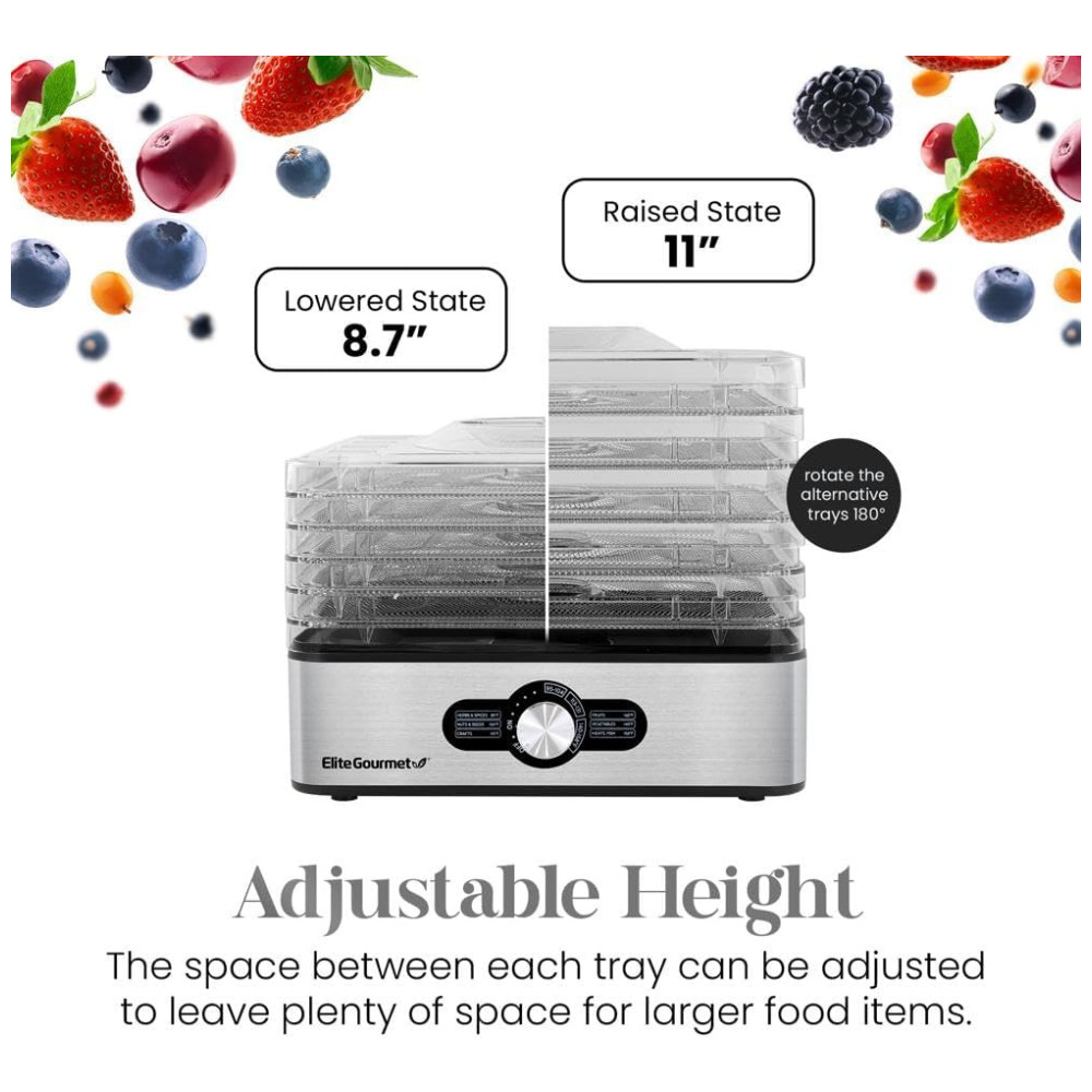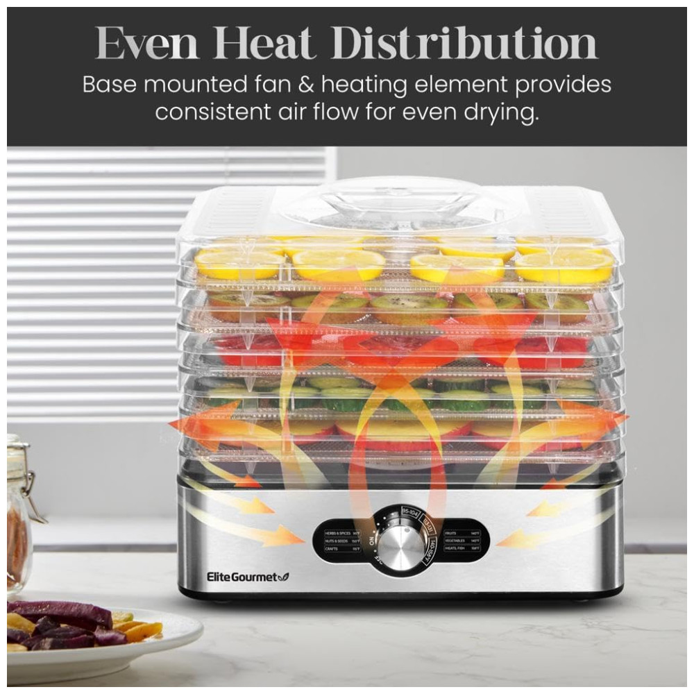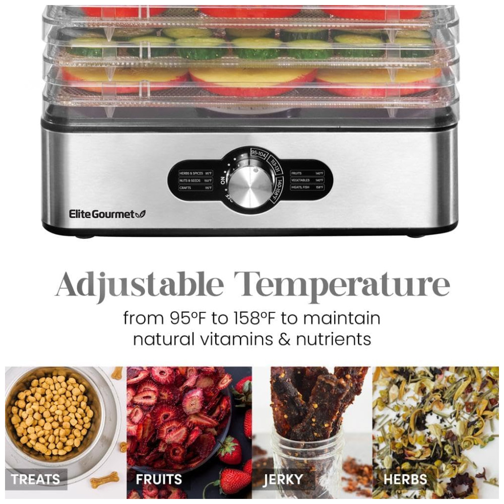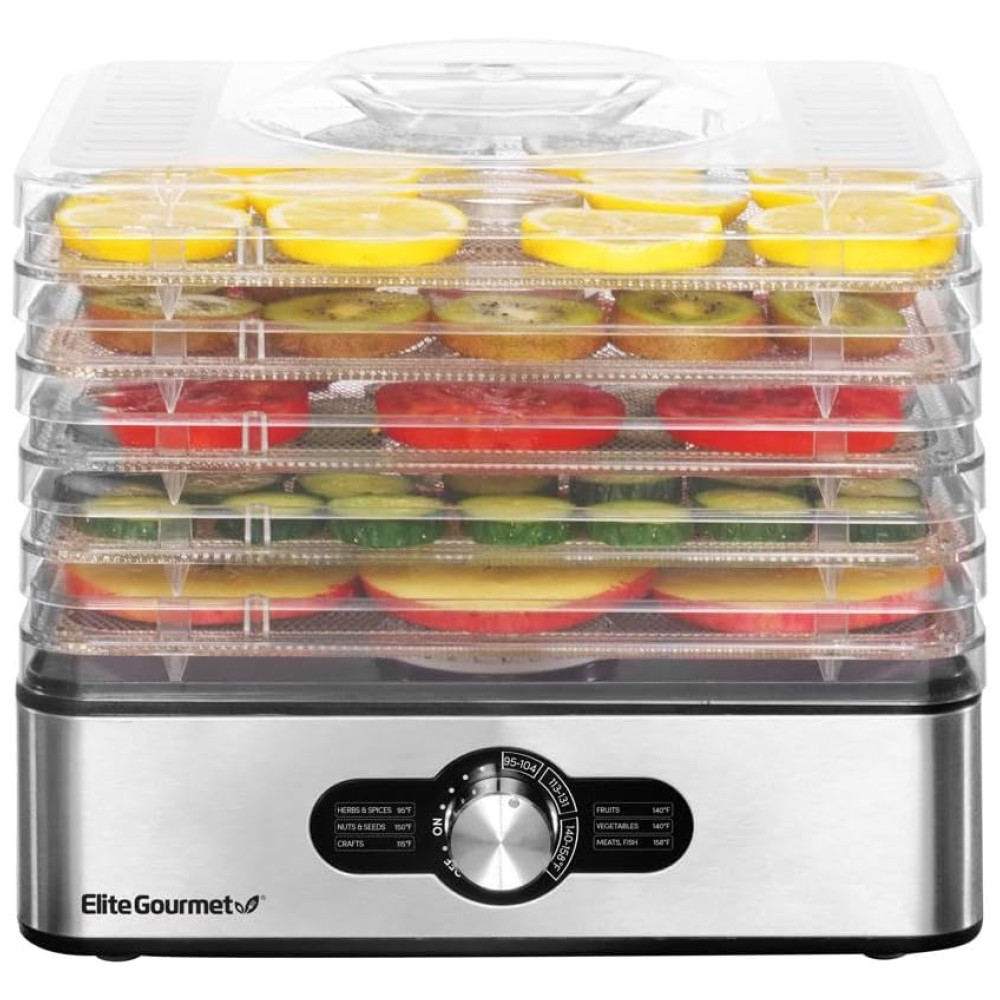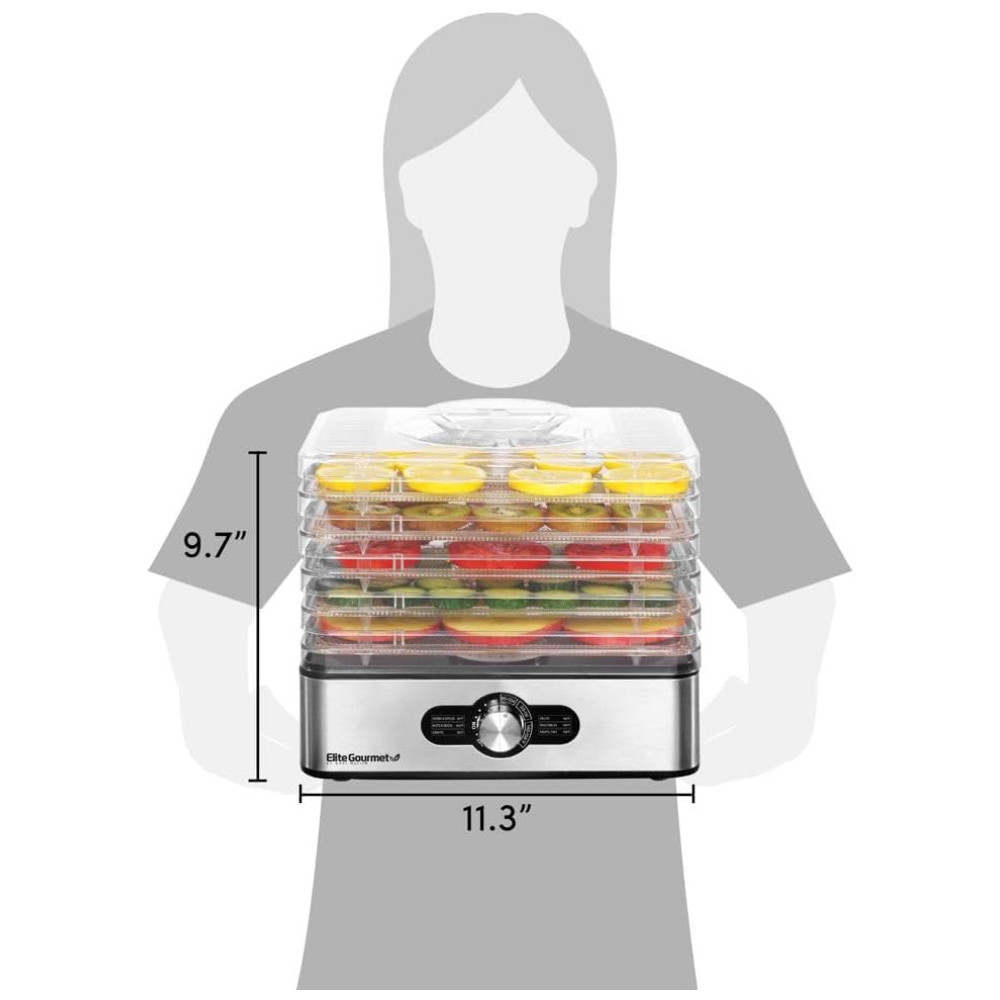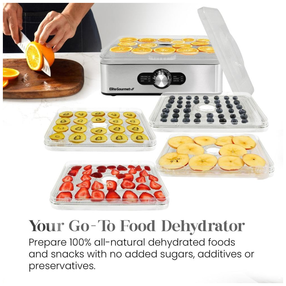 Desidratador de Alimentos com 5 Bandejas Painel Digital de Controle 110v ELITE GOURMET EFD3321 Prateado