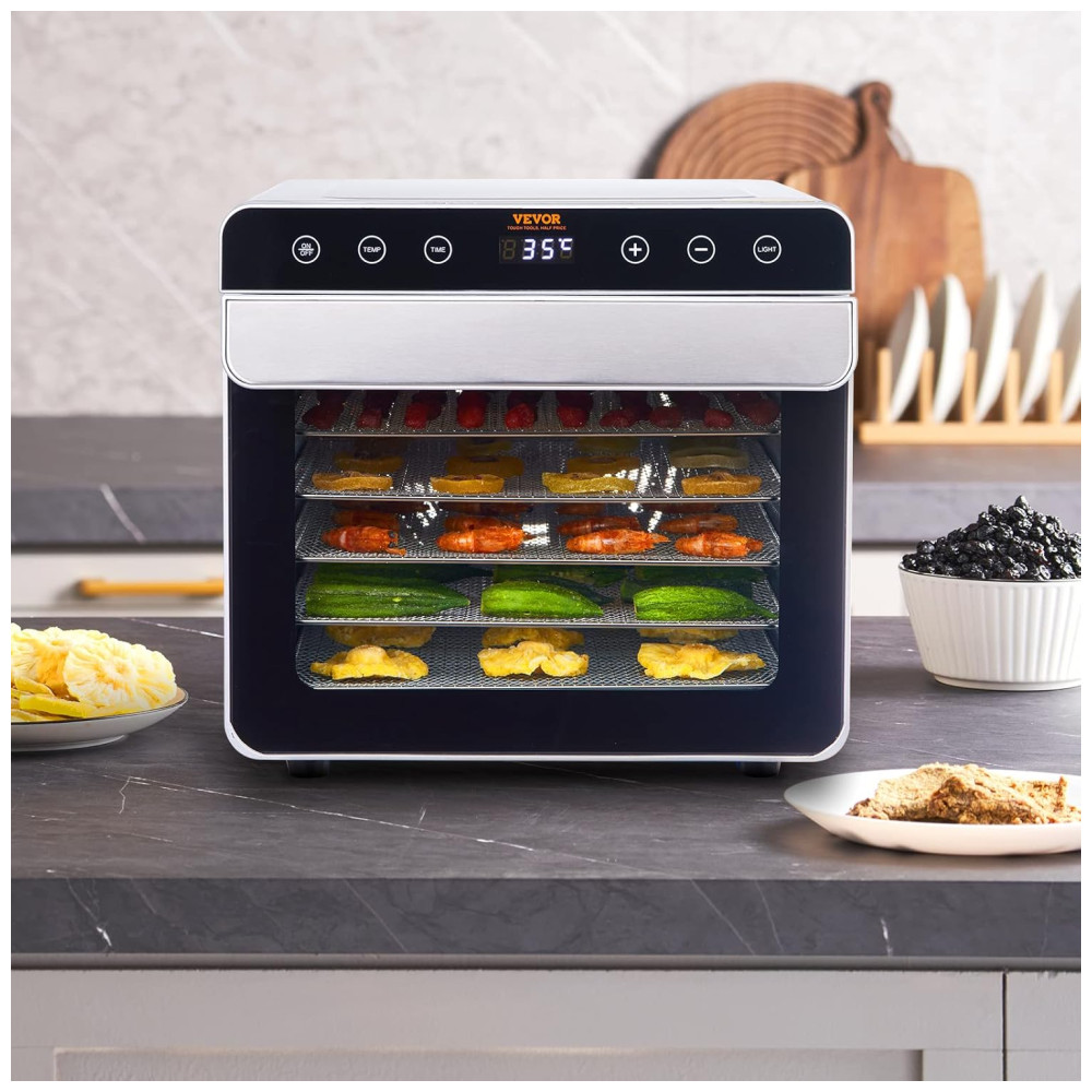 Desidratador de Alimentos com 6 Bandejas Aço Inoxidável 110V 700W VEVOR Preto