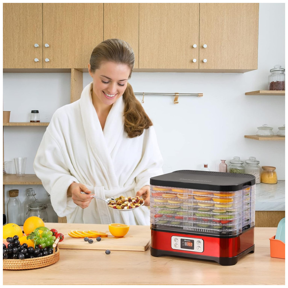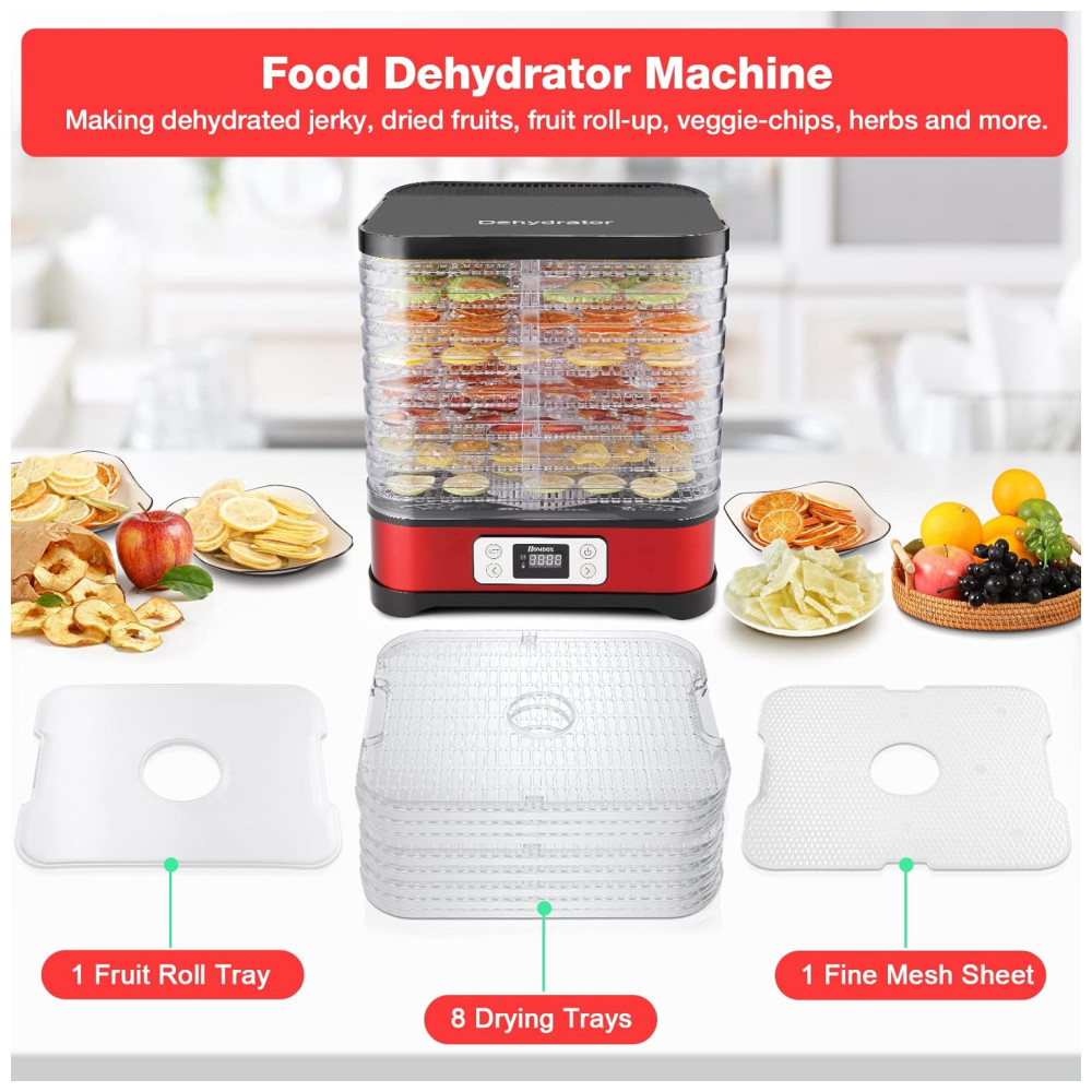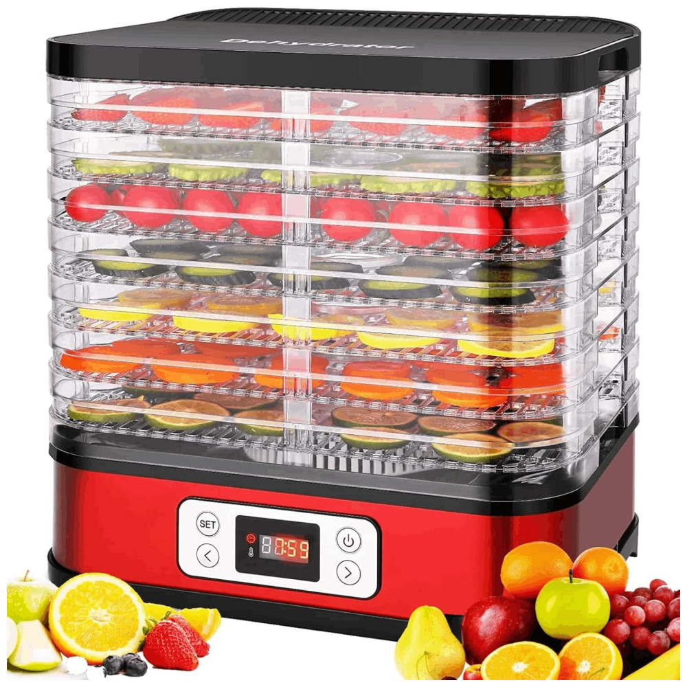 Desidratador de Alimentos com 8 Bandejas e Temporizador Digital 400W COOCHEER Vermelho