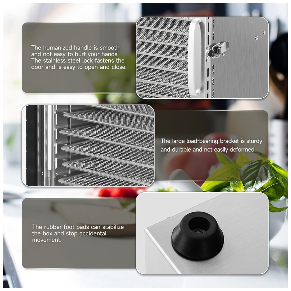 Descubra a versatilidade e eficiência do Desidratador de Alimentos Comercial, a solução perfeita para desidratar frutas, vegetais, carnes, ervas e muito mais. Com 10 bandejas espaçosas, timer digital e controle preciso de temperatura, este desidratador é ideal para uso doméstico ou comercial, oferecendo resultados profissionais com facilidade.