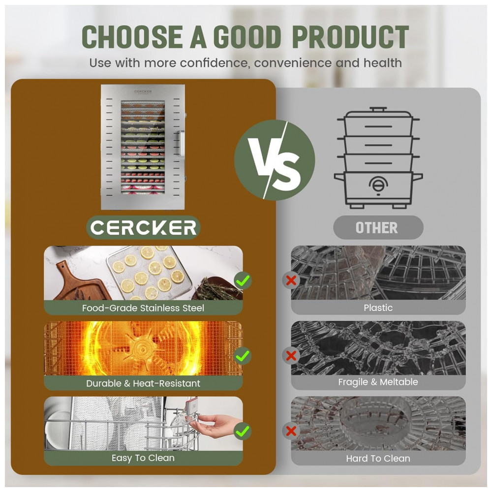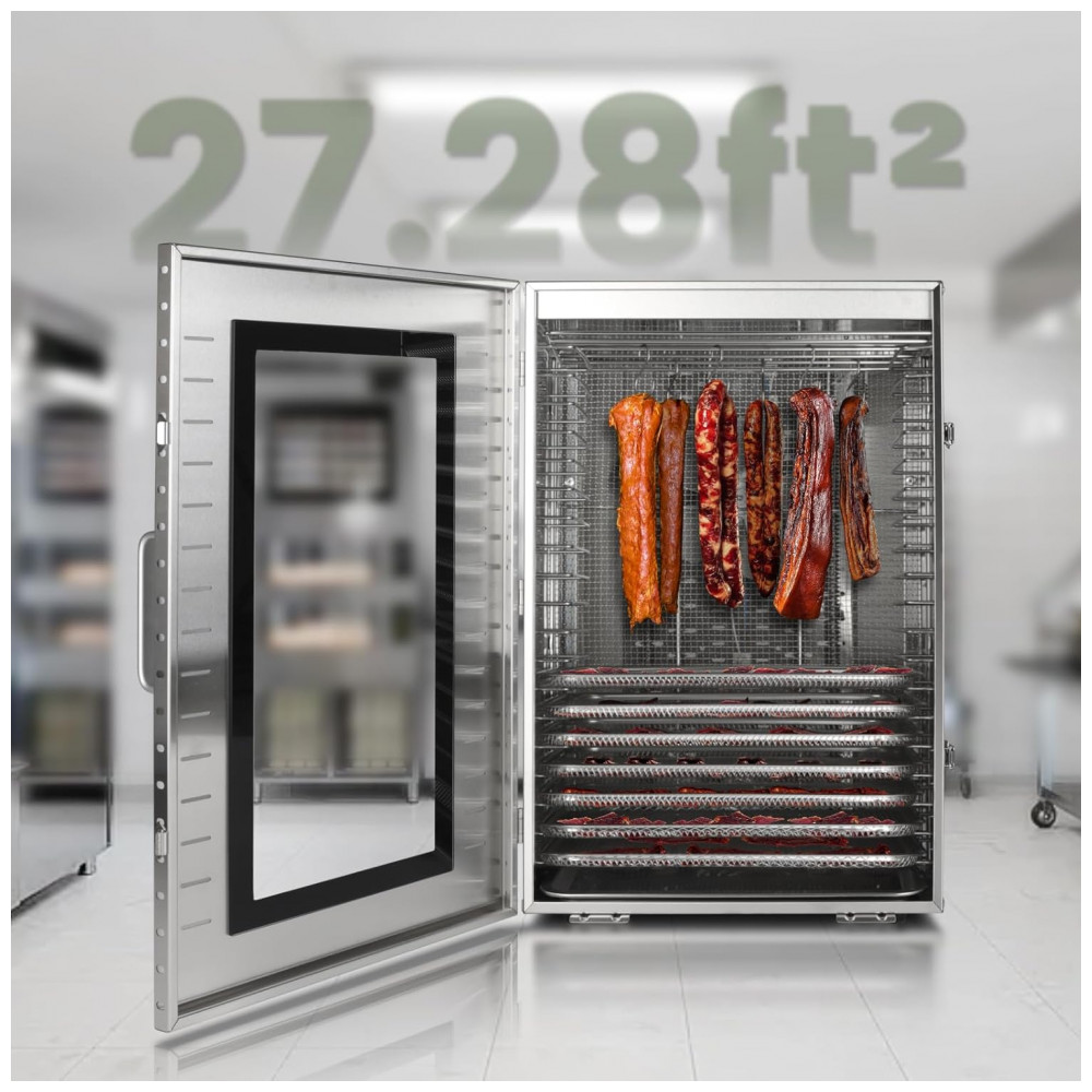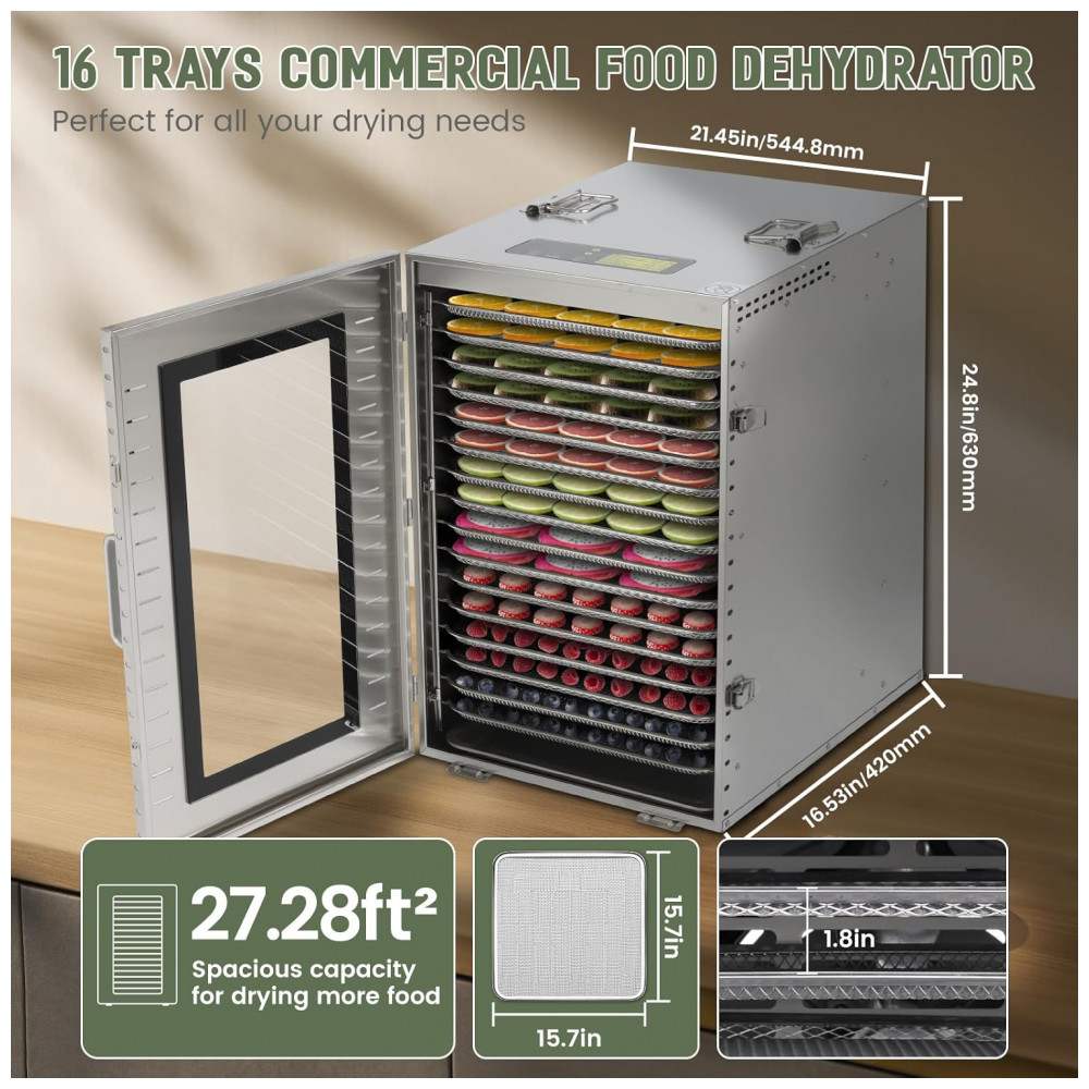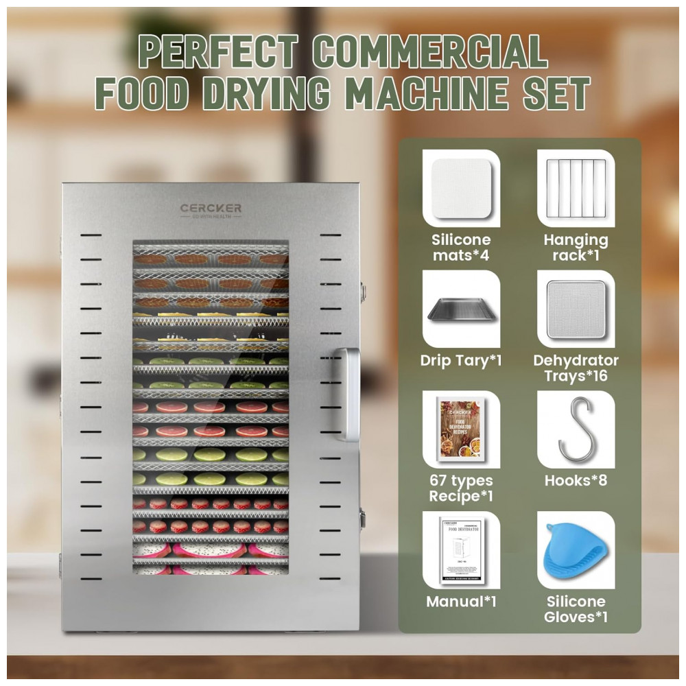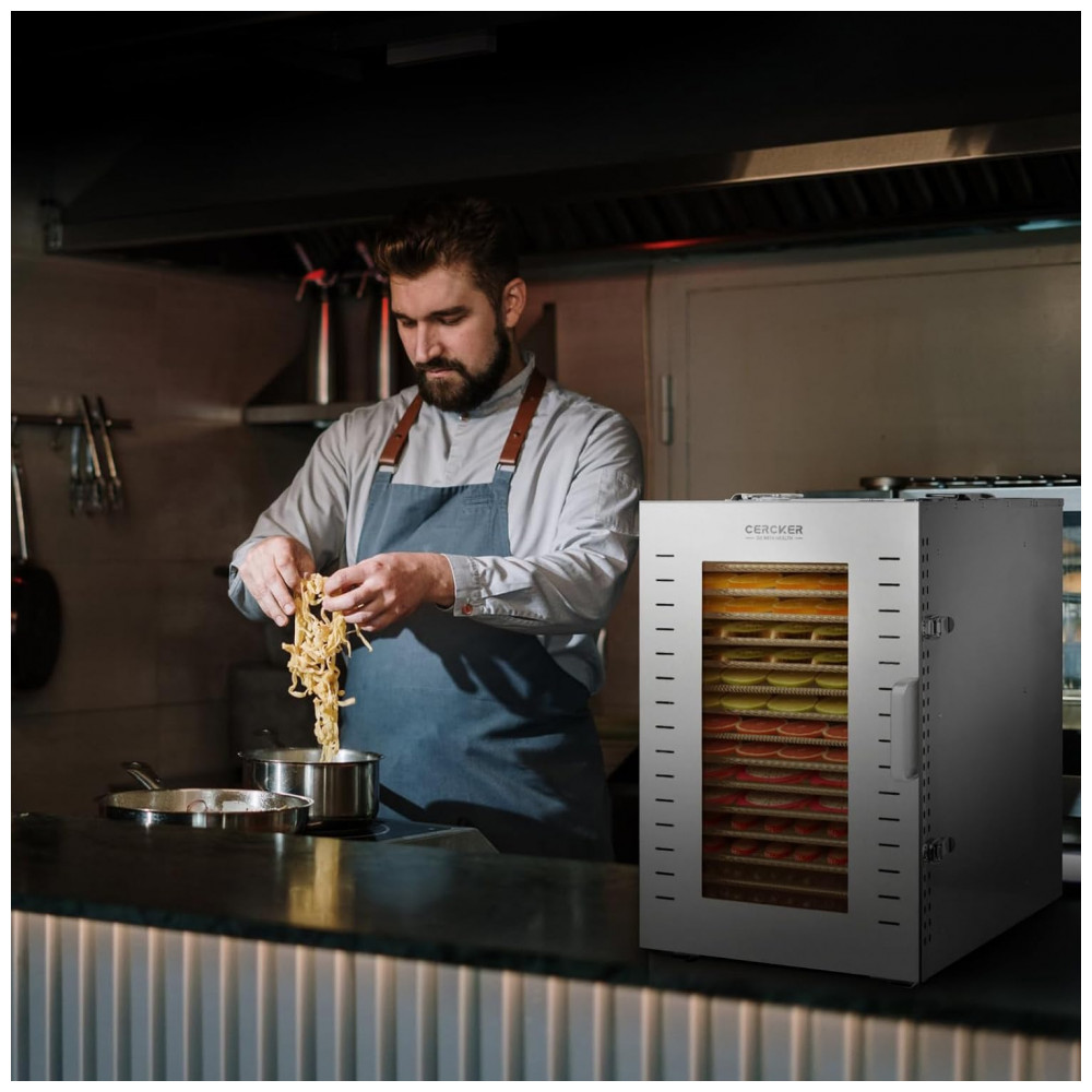 Desidratador de Alimentos Comercial Cercker 1500W com 16 Bandejas Aço Inoxidável.