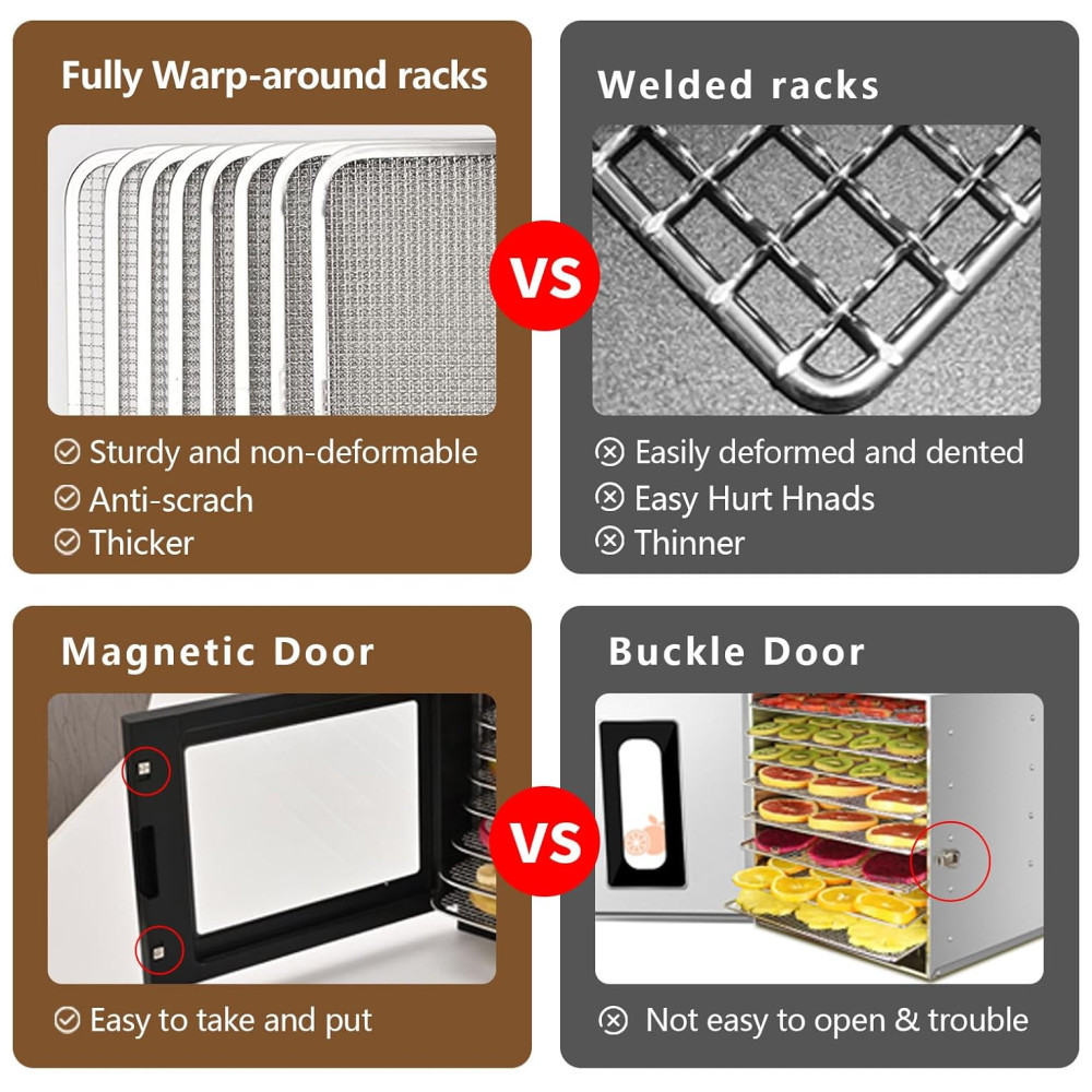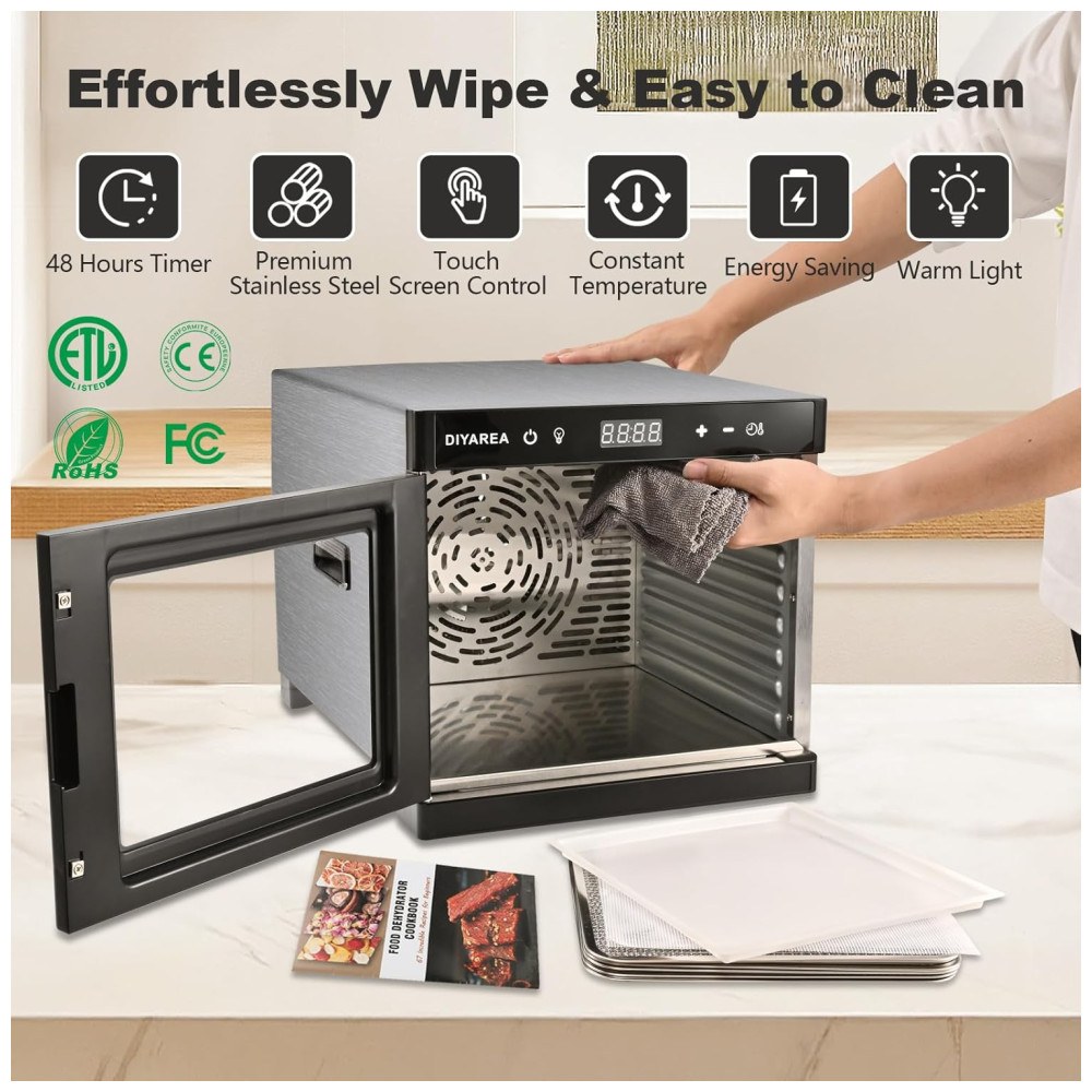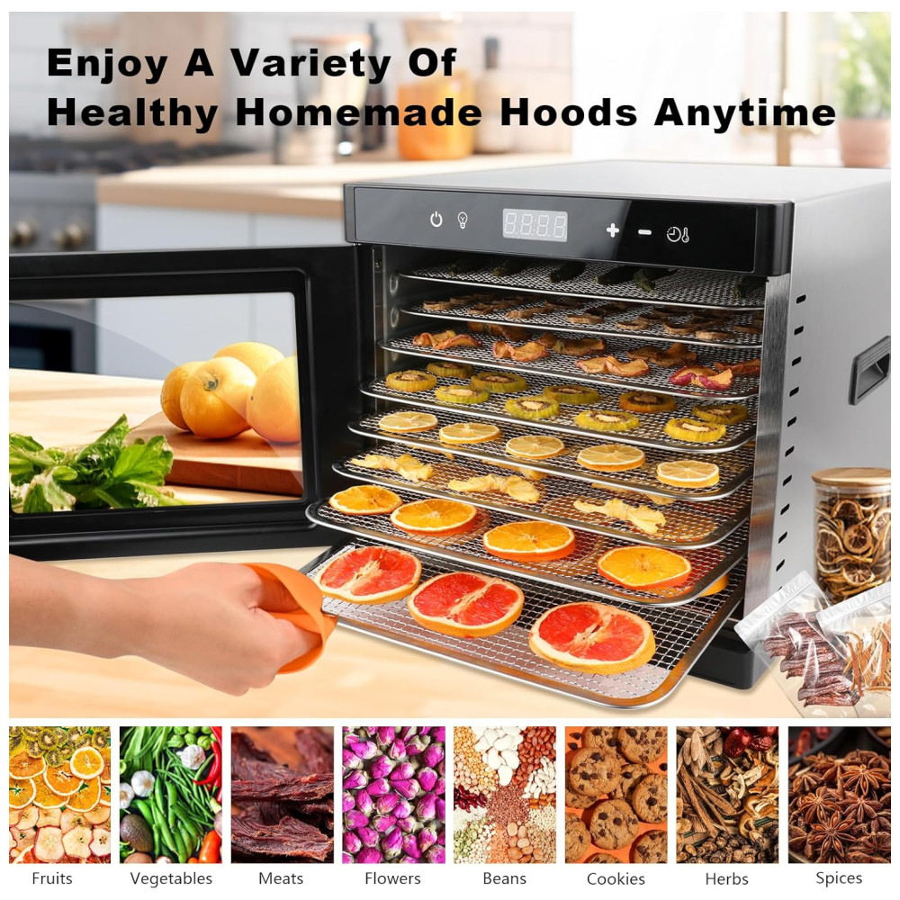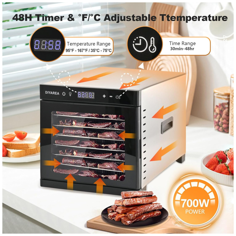 Desidratador de Alimentos DIYAREA 8 Bandejas de Aço Inoxidável Controle de Temperatura 75°C Temporizador 48H 700W