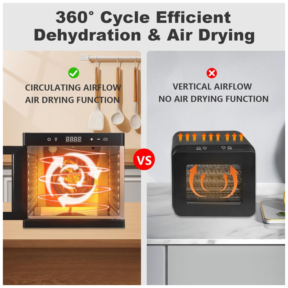 O Desidratador de Alimentos DIYAREA é ideal para desidratar frutas, ervas, carnes, vegetais e petiscos para cães. Com 8 bandejas de aço inoxidável, oferece uma grande capacidade de secagem. O controle de temperatura ajustável até 75°C e o temporizador de 48 horas garantem resultados precisos e consistentes. A função de circulação de ar quente 360° e a função de secagem ao ar garantem uma desidratação uniforme e eficiente.
