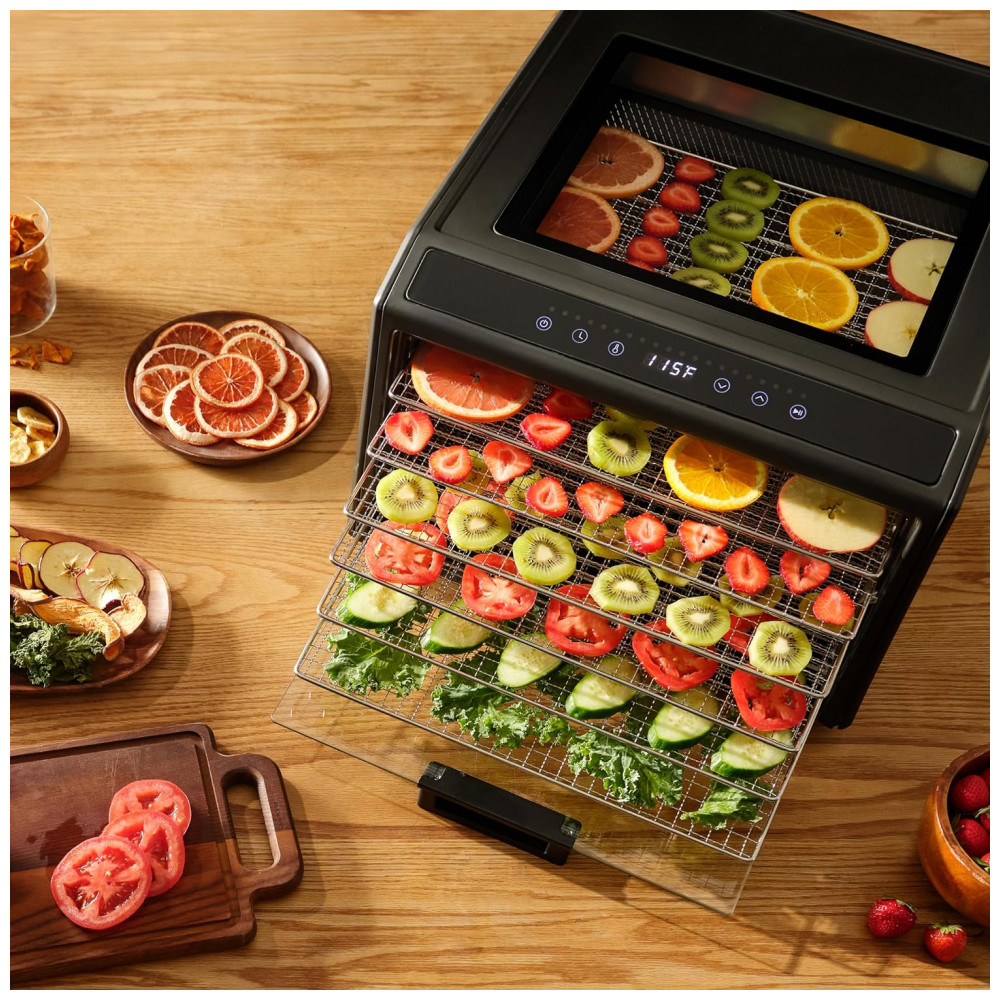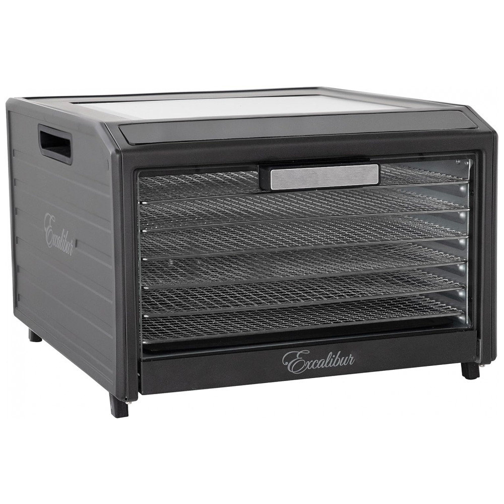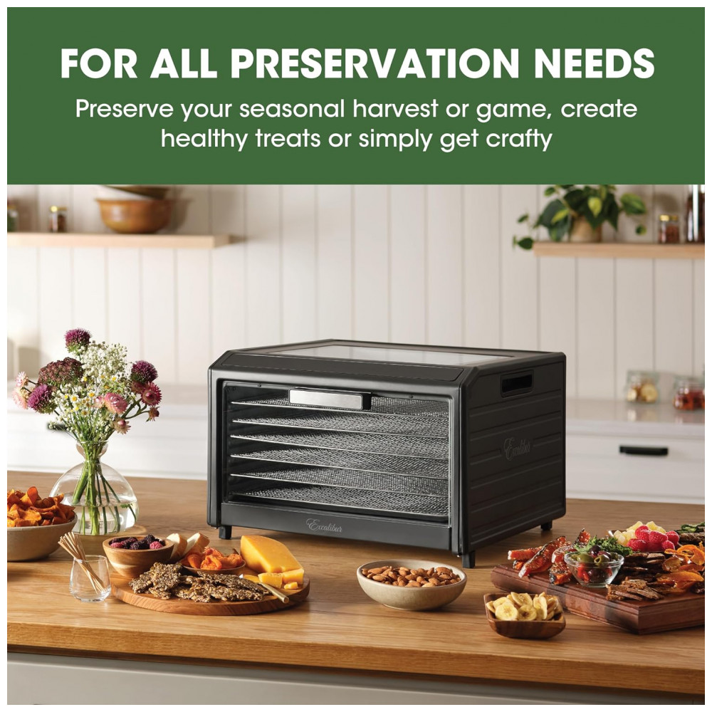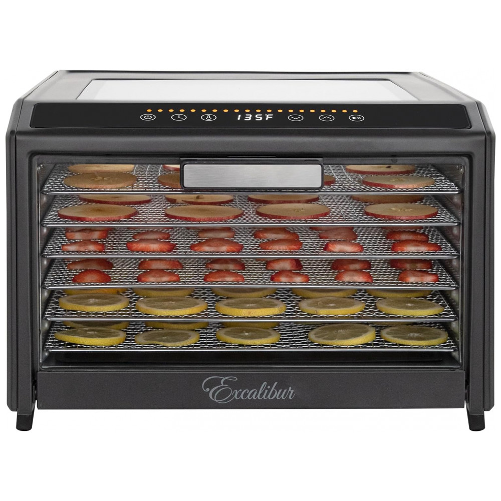 Desidratador de Alimentos Elétrico com 6 Bandejas Controle de Temperatura e Porta de Vidro para Visualização 700W Excalibur Preto