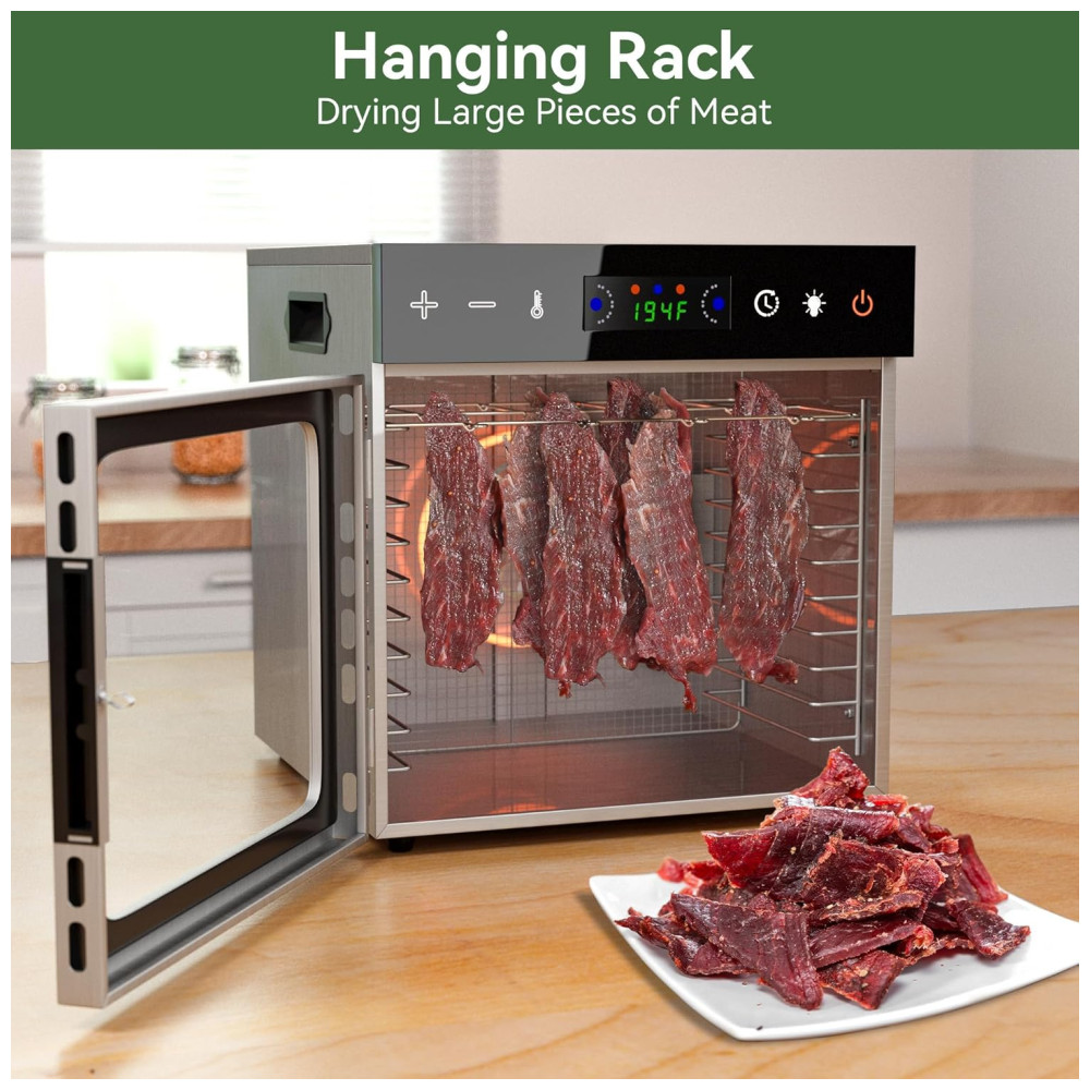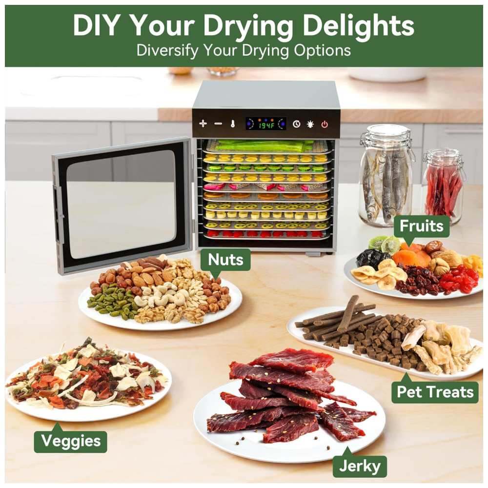 Possui proteção contra superaquecimento integrada para segurança e a porta transparente é conveniente para monitorar o processo de desidratação.