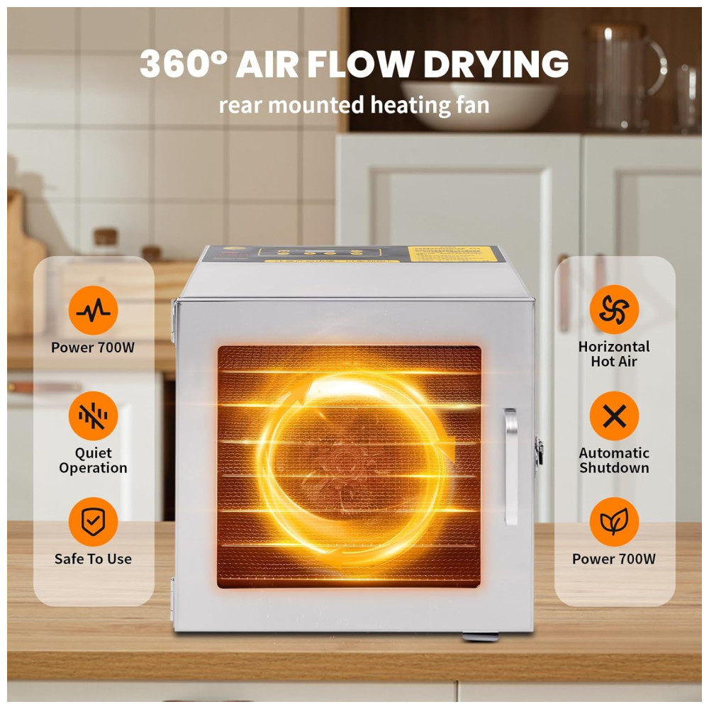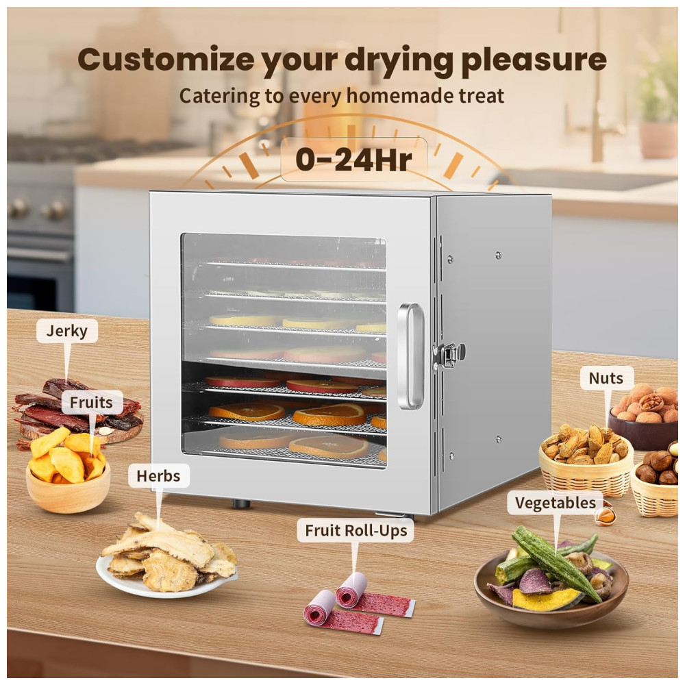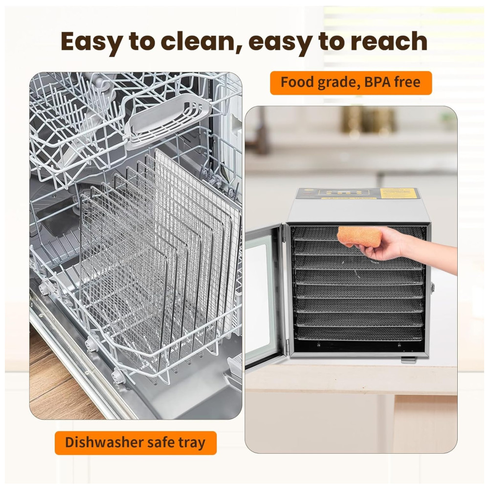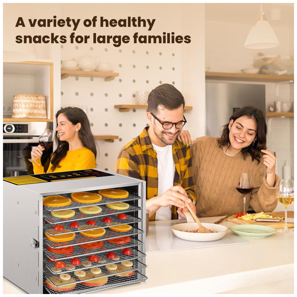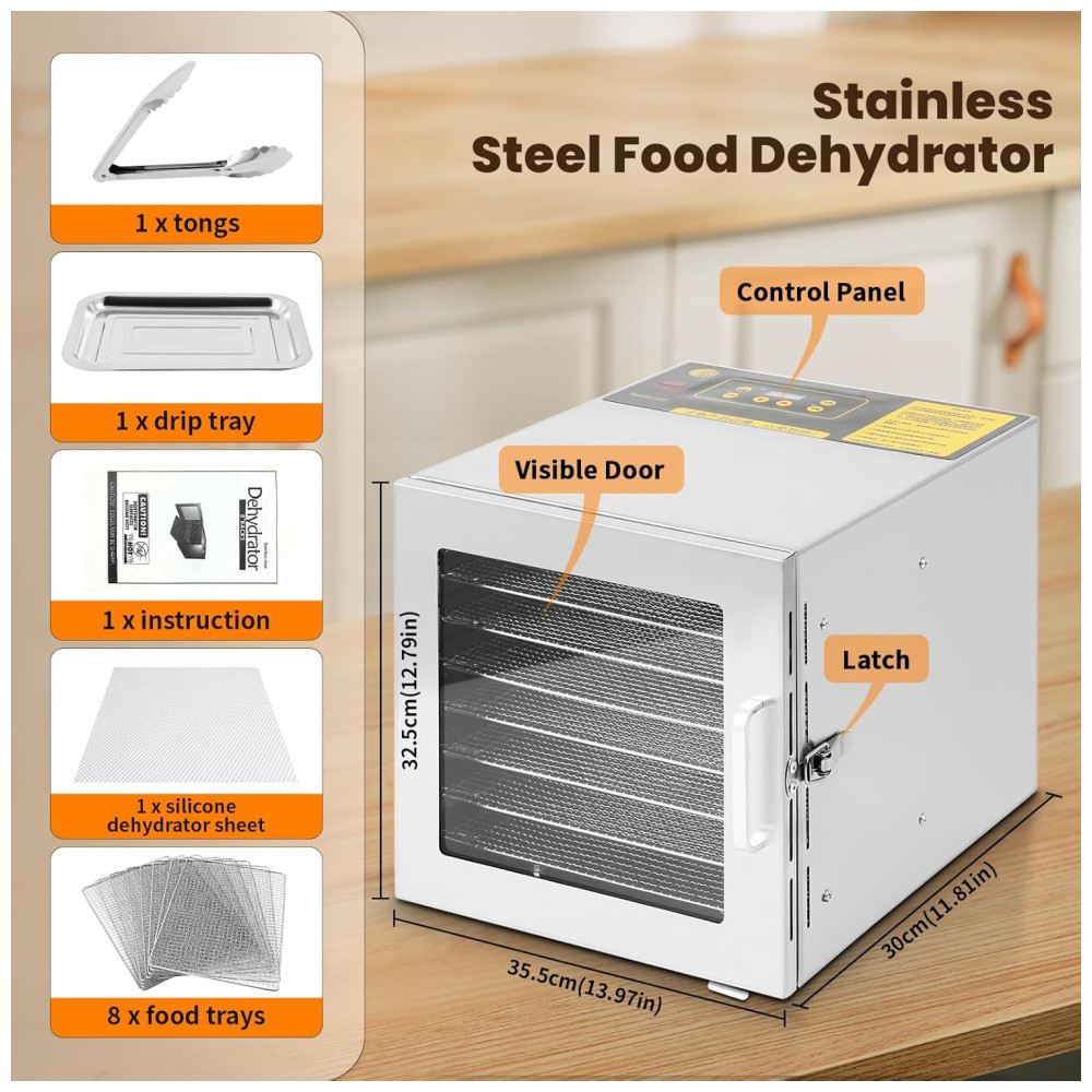 Desidratador de Alimentos FAHKNS 8 Bandejas de Aço Inoxidável Controle de Temperatura 88°C Temporizador 24H 700W