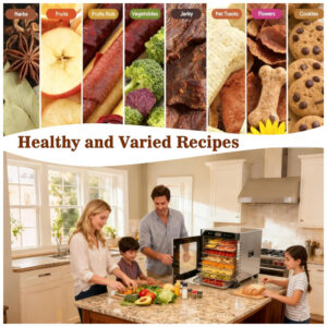 Cansado de lanches pouco saudáveis ou desperdício de alimentos? O desidratador de alimentos da Fooikos transforma ingredientes do dia a dia em deliciosos e naturais petiscos, perfeito para todos os estilos de vida. Para pais ocupados, prepare petiscos de frutas amados pelas crianças, como chips de banana e maçã, no desidratador de frutas definindo a temperatura em 45°C por 6 horas e vá fazer outras tarefas. A proteção contra superaquecimento mantém tudo seguro, as bandejas em aço inoxidável livres de BPA comportam alimentos para a semana toda. Acabe com a briga por junk food! Para os amantes do ar livre, faça jerky de carne com este desidratador de carne, marinar carne magra, ajustar para 60°C por 8 horas e tenha proteína em tamanho compacto para trilhas. Compacto o suficiente para armazenar com equipamento de camping. Para donos de animais de estimação, prepare petiscos para cachorro sem aditivos, como tiras de frango e batata doce neste desidratador de carne. O calor 360 garante secagem uniforme e as bandejas são fáceis de limpar, garantindo que seu mascote tenha o melhor, sem aditivos. Para os amantes de sustentabilidade, conserve produtos sazonais como tomates de verão e ervas frescas com este grande desidratador. Bandejas de 30,5 x 30,5 cm secam porções para uso durante todo o ano, reduzindo o desperdício de alimentos. Bandejas seguras para lava-louças facilitam a limpeza. Combine com um liofilizador para fazer doces divertidos também! Este não é apenas um secador, mas sim seu companheiro na cozinha para petiscos mais saudáveis, mais baratos e mais felizes.