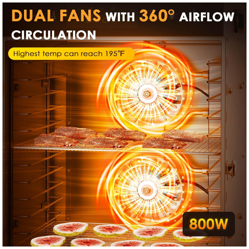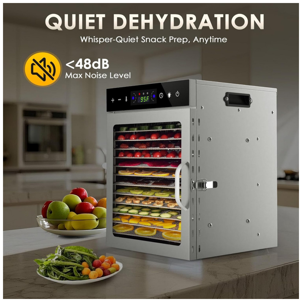 Desidratador de Alimentos HOPERAN 12 Bandejas de Aço Inoxidável Controle de Temperatura 90°C Temporizador 24H 800W