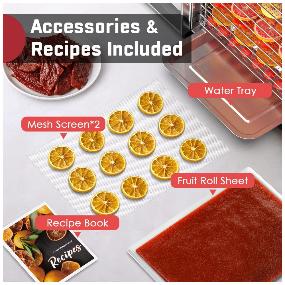 Desidratador de Alimentos HOPERAN com 12 Bandejas em Aço Inoxidável Máquina de 800W com 4 Configurações Controle Digital de Tempo e Temperatura para