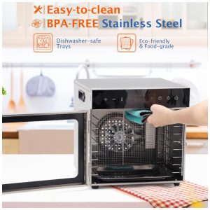 Desidratador de Alimentos Oritouchpop 8 Bandejas de Aço Inoxidável Controle de Temperatura 90°C Temporizador 24H 400W