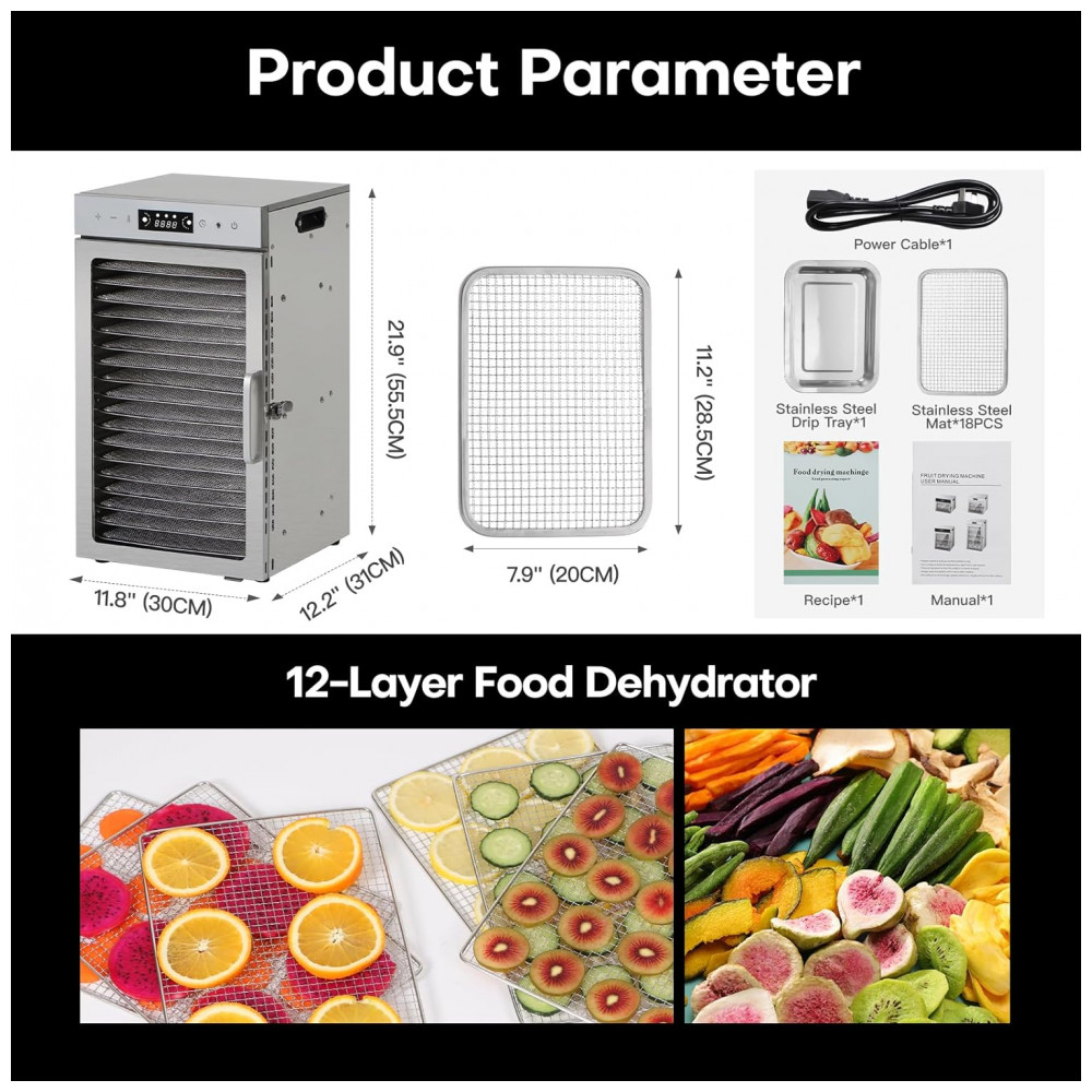 Desidratador de Alimentos Panana Desidratadores para Carne Seca Desidratador de Aço Inoxidável para Frutas Vegetais Ervas Cogumelos Petiscos par