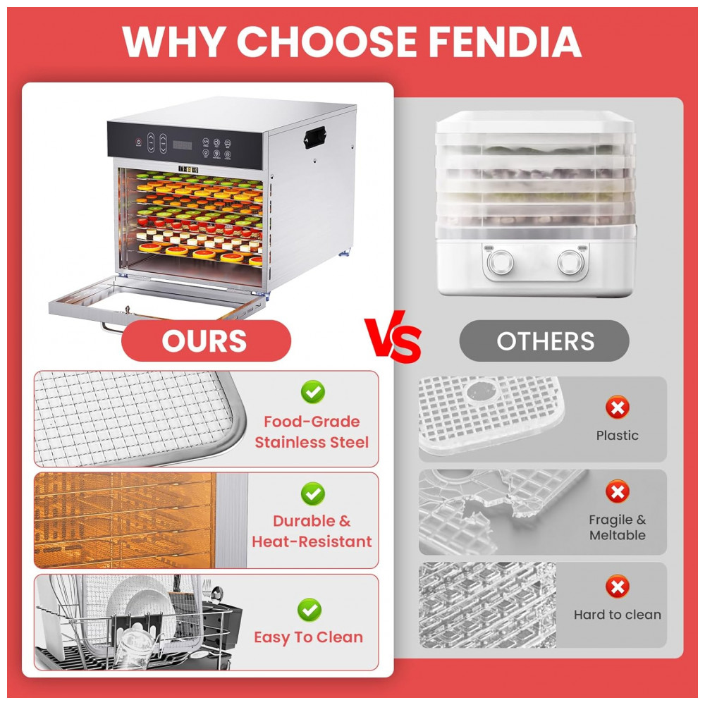 Desidratador de Alimentos para Jerky 7 Bandejas Grandes de Aço Inoxidável 600W Desidratador de Frutas Temporizador de 24Hfendia