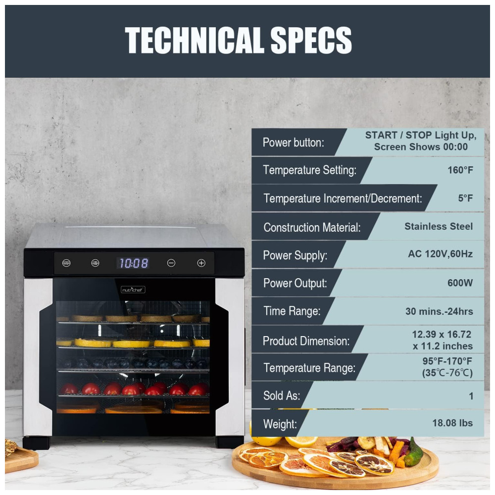 Desidratador de Alimentos Profissional 600W 6Trays NUTRICHEF NCDH6S.5 Preto