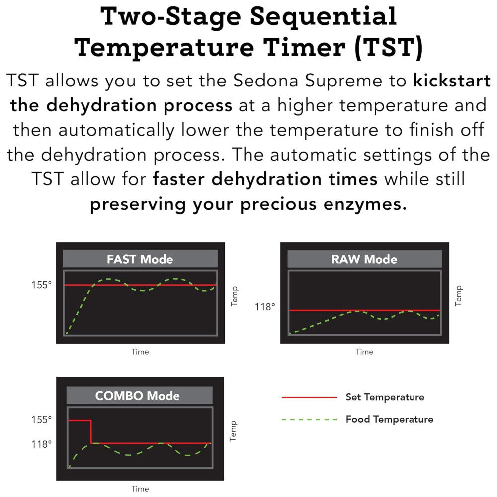 Recurso TST Temporizador de temperatura seqencial em dois estágios para desidratação mais rápida.