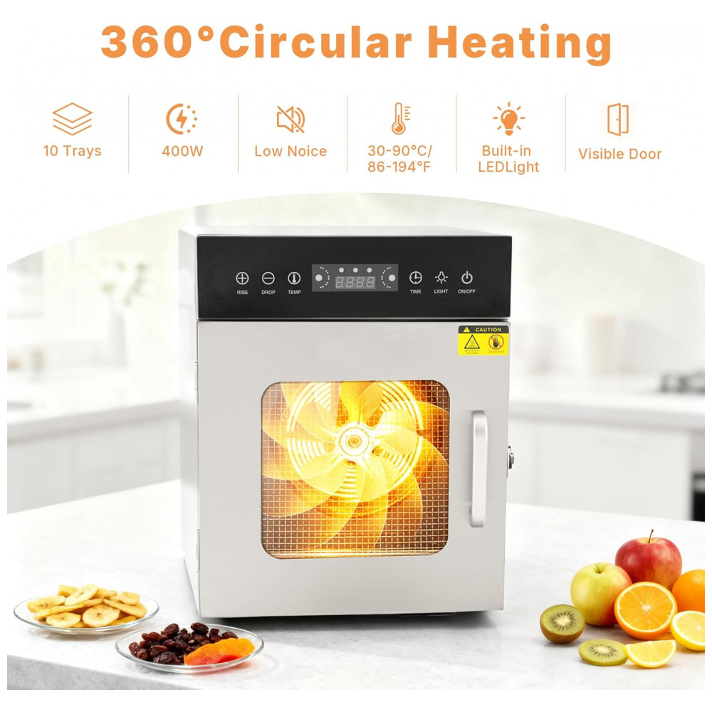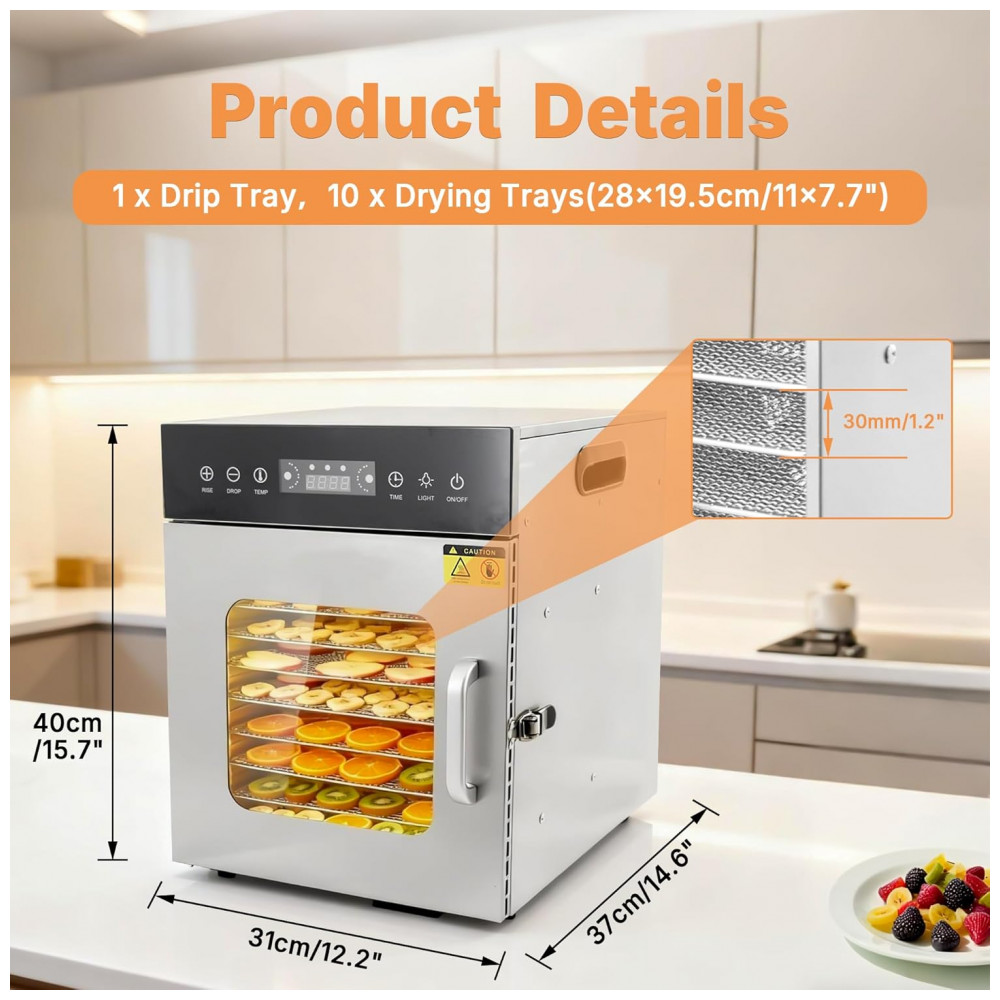Desidratador de Alimentos Profissional com 10 Bandejas em Aço Inoxidável 110V 400W Hakka