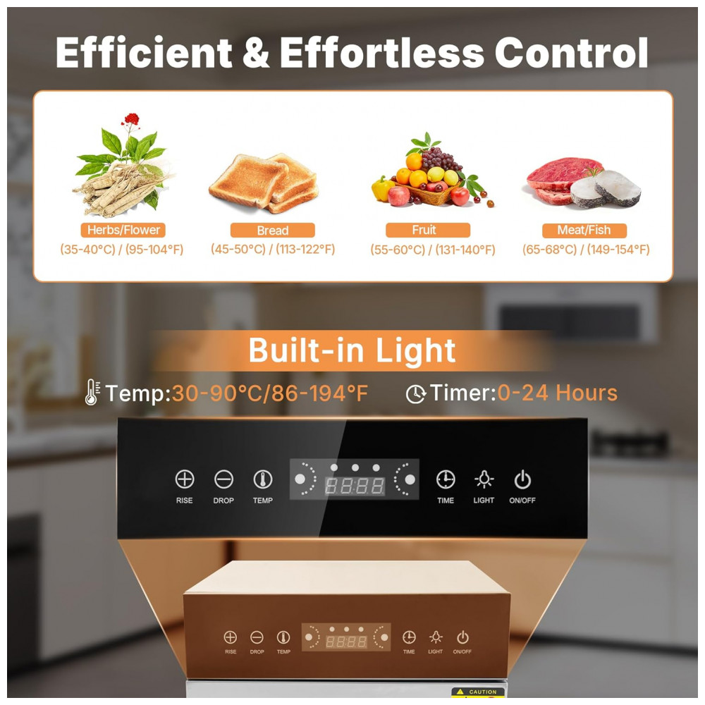 Faixa de temperatura ajustável 29 a 90 C e temporizador de 24 horas para precisão.