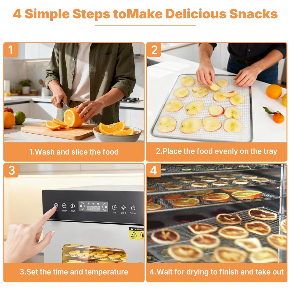 Ótimo para desidratar frutas, ervas, carne, carne seca, couros de frutas e muito mais.