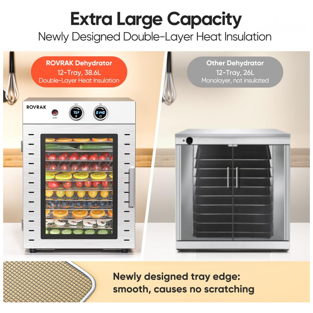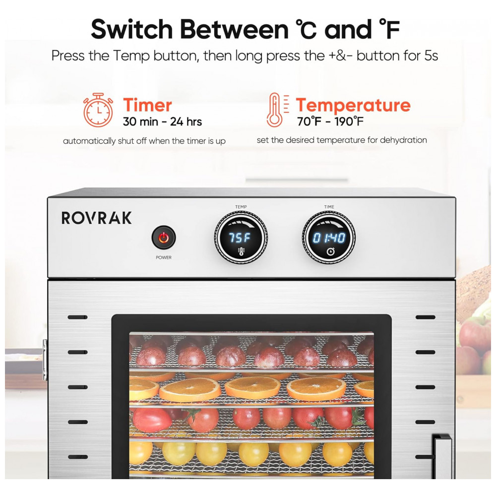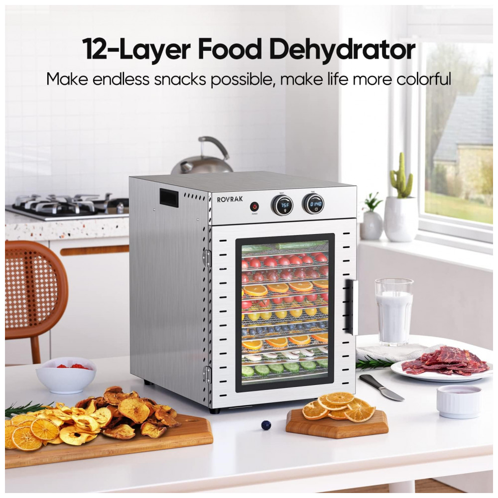 Desidratador de Alimentos Profissional com 12 Bandejas em Aço Inoxidável 110V 1000W ROVRAk