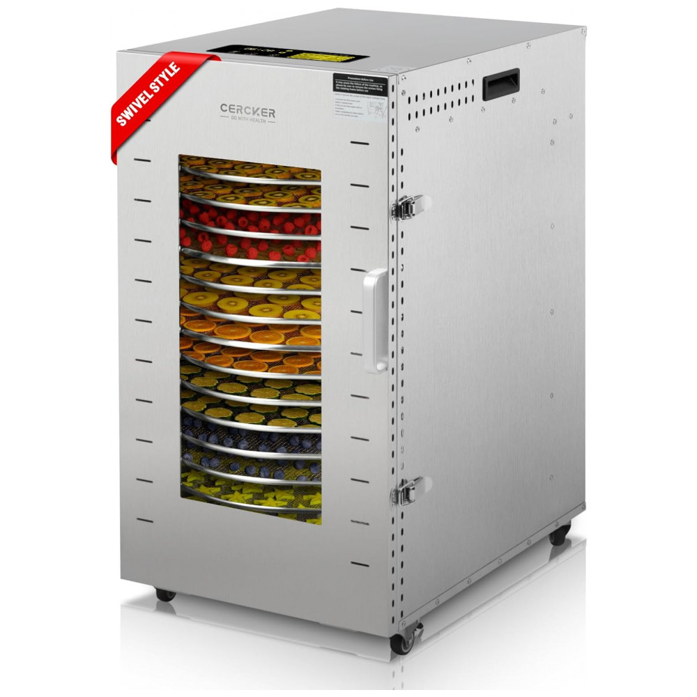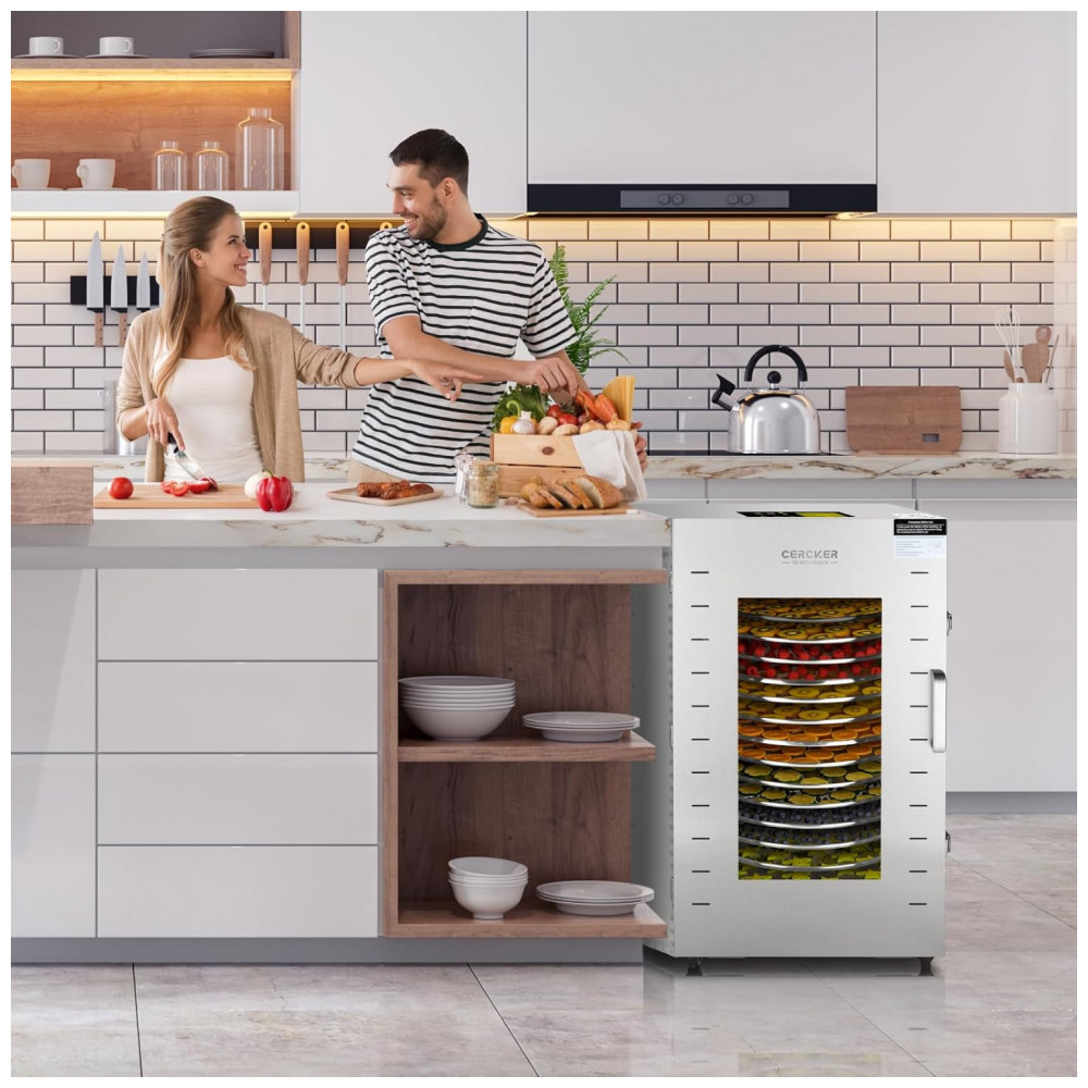 Desidratador de Alimentos Profissional com Rotação Automática 360º e 16 Bandejas em Aço Inoxidável 110V 1500W Cercker Prata