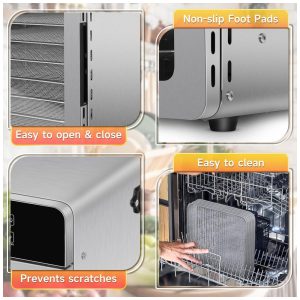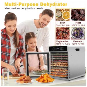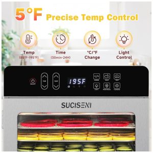 Desidratador de Alimentos SUCISENI com 10 Bandejas de Aço Inoxidável 9 pés 1000W Timer de 24 Horas e Controle de Temperatura