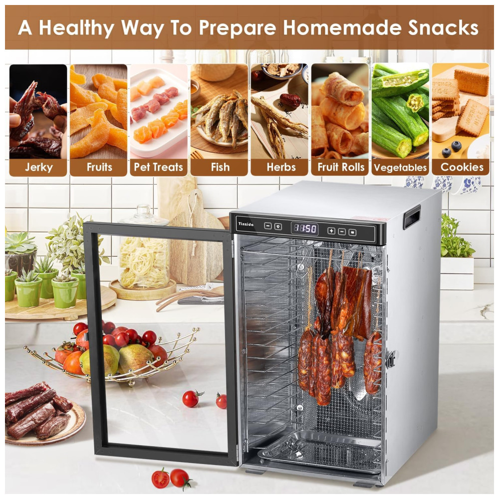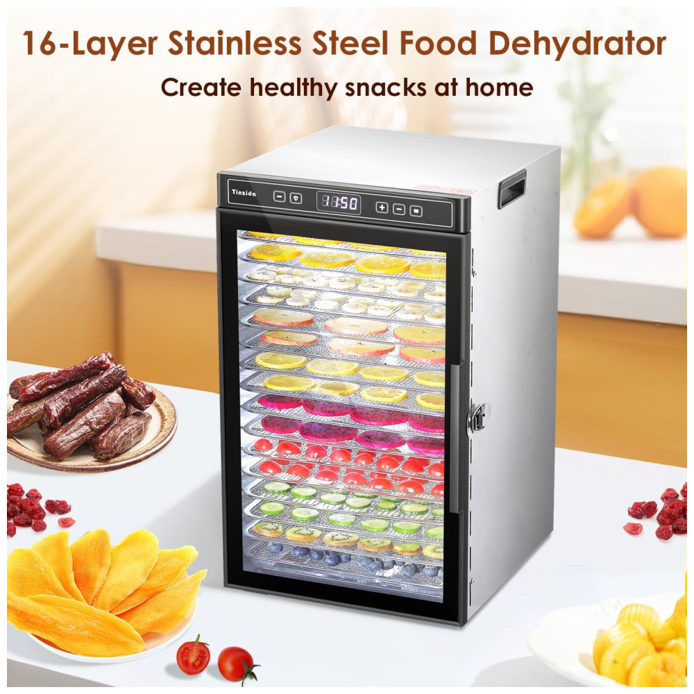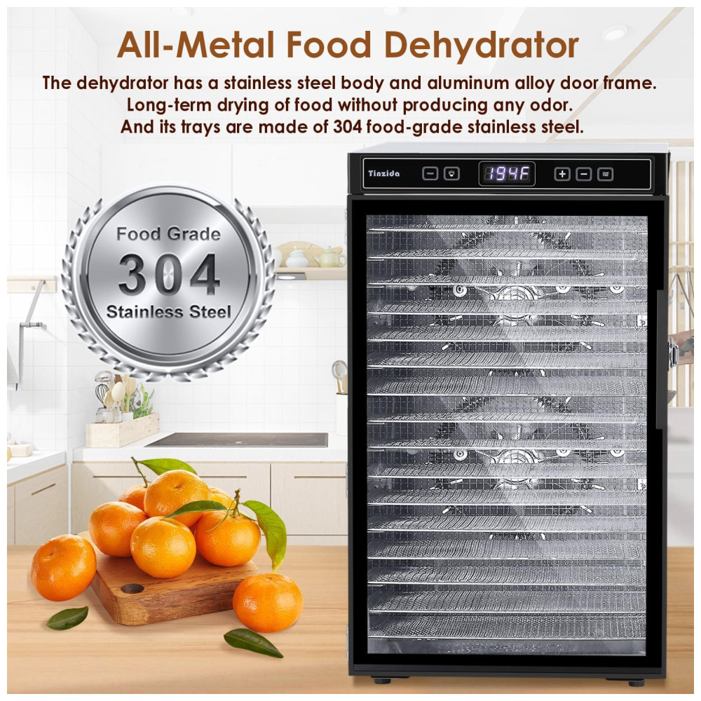 Desidratador para alimentos e carne seca. 16 Bandejas de Aço Inoxidável. Grande Máquina Desidratadora de Alimentos para