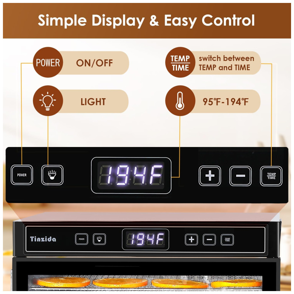 A iluminação interna e a porta de vidro transparente permitem que você observe sem esforço o estado de desidratação sem abrir a porta