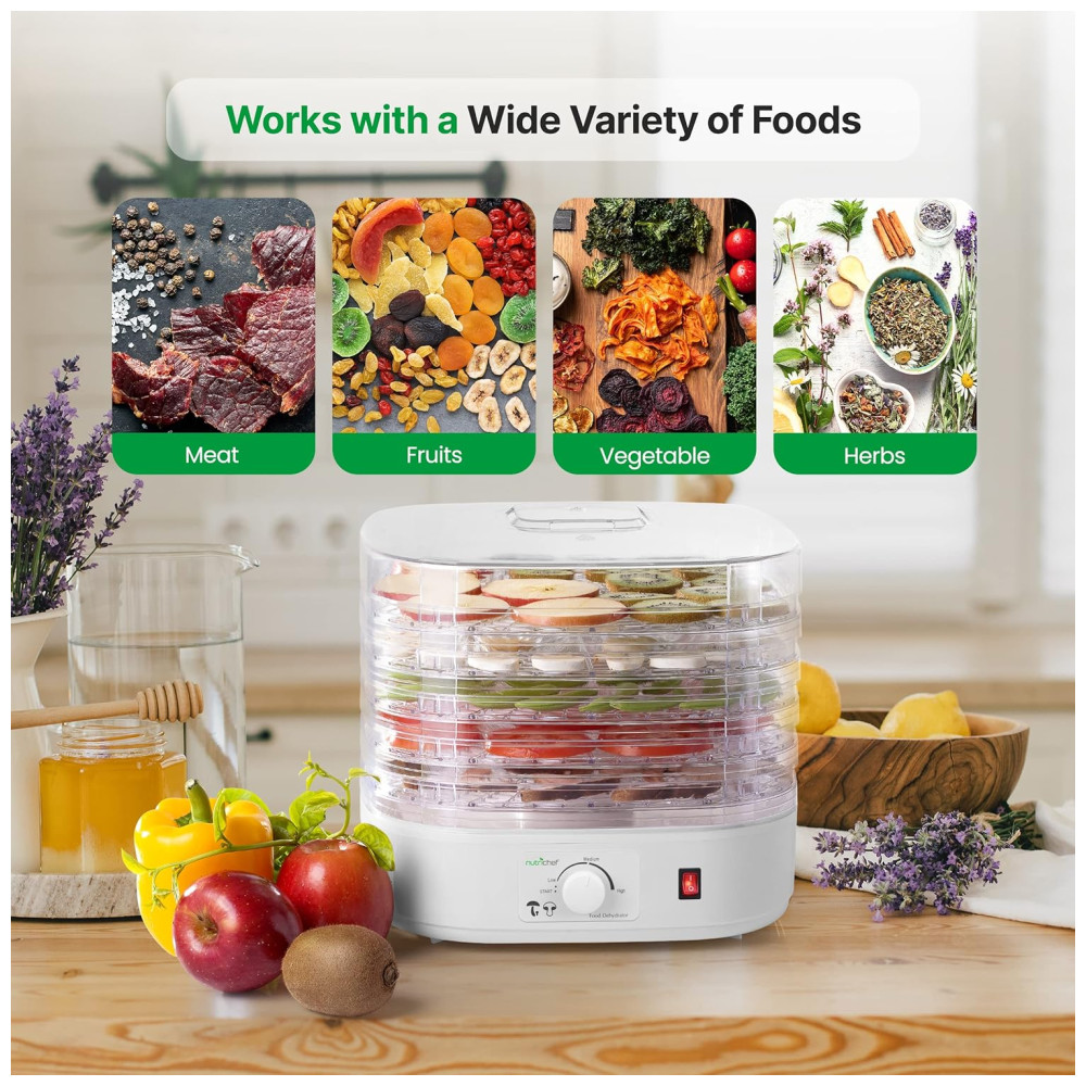 Desidratadora Nutrichef para Alimentos | Multi-Camadas para Uso Doméstico | Ideal para Carne Seca Frutas Legumes e Petiscos para Cães | 5 Bandejas.