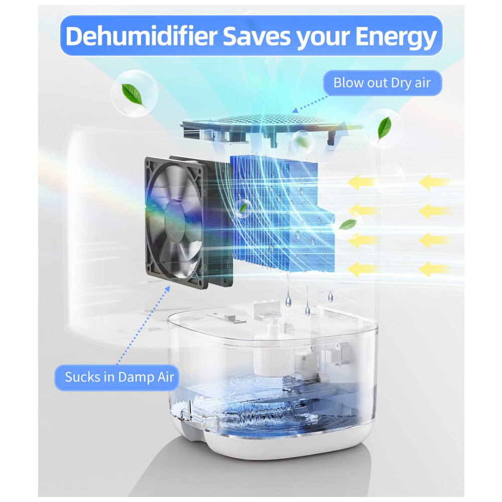 Desumidificador portátil para quarto: Com um tamanho compacto de 15 x 15 x 25,7 centímetros e uma alça embutida na parte traseira, é muito conveniente para ser colocado em qualquer lugar. Ajudando a tirar o excesso de umidade do ar para você no quarto, banheiro, trailer, armário.