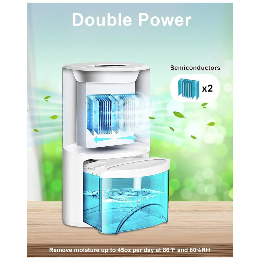 Desumidificador de alta eficiência equipado com um tanque de água de 2.000 ml, pode remover rápida e efetivamente até 1000 ml temperatura 86 F, umidade 80 UR de umidade do ar por dia. Melhore a qualidade ambiental e torne sua casa mais confortável e saudável a cada momento.