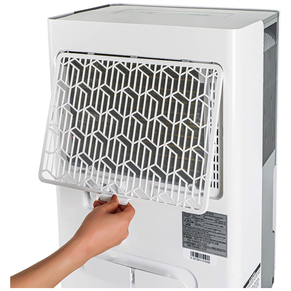 TECNOLOGIA INTELIGENTE Desumidificador pequeno possui painel de controle eletrônico montado na parte superior com umidóstato ajustável com display digital LED. O descongelamento automático e o reinício automático garantem uma funcionalidade perfeita