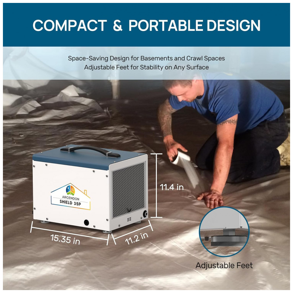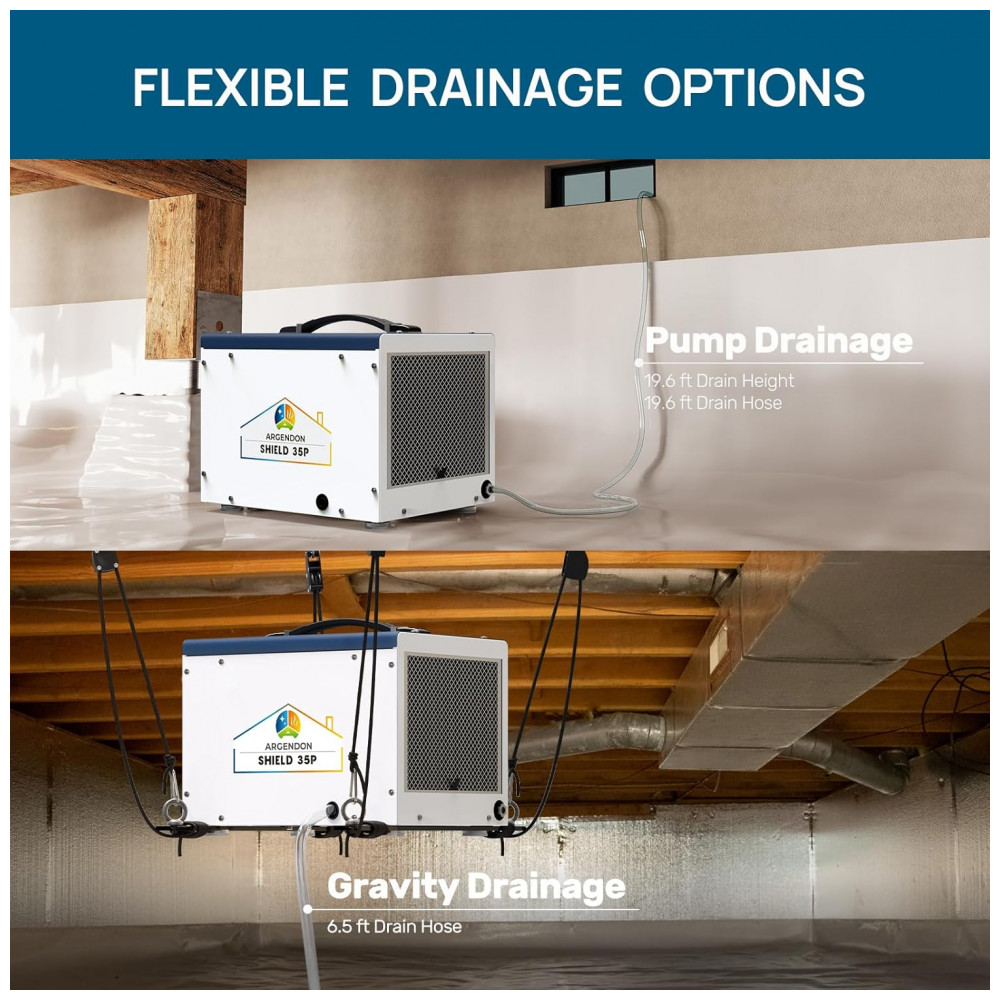 Desumidificador ARGENDON para Espaços de Rastejo com Bomba 33 litros Desumidificador Comercial para Porões com Mangueira de Drenagem Auto Degelo I