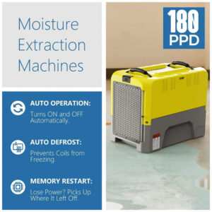 Controle por aplicativo para secar em qualquer lugar! Monitore o processo de restauração em movimento com o aplicativo móvel gratuito AlorAir DryEasy incluído na compra. O Desumidificador Comercial possui capacidade de remoção de umidade de 180 PPD em condições de saturação, com eficiência super alta de 5,62A. Compacto, se encaixa em pequenos espaços, empilhamento seguro e compacto para transportar várias unidades em um carrinho de mão. Estrutura robusta de polietileno resistente a amassados e arranhões. Ideal para uso comercial, industrial e pessoal em limpeza de carpetes, porões, lavanderias, escritórios, laboratórios, garagens, entre outros. Design humanizado com armazenamento a bordo para cabo de energia de 6 metros e mangueira de drenagem de 6 metros. Controle de umidade digital automático, Inicialização de Memória, Timer, Controle Digital Automático de Umidade. Desumidificador Industrial com Bomba de Condensado, reinício automático após queda de energia, sem necessidade de ligar manualmente. Display LCD claro e simples com exibição de Temperatura e Umidade nos lados de entrada e saída. Possui sistema de degelo automático avançado que previne o acúmulo de gelo e problemas relacionados. Conserva energia e prolonga a vida útil da unidade.
