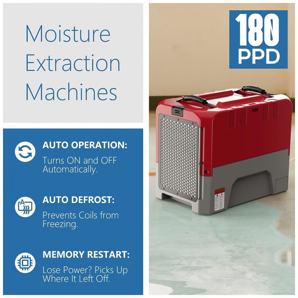Controle via aplicativo em qualquer lugar! Monitore o processo de restauração em movimento com o aplicativo gratuito AlorAir DryEasy incluído na compra. O desumidificador comercial possui capacidade de remoção de umidade de 180 PPD em condições de saturação, sistema super eficiente de 5.62A e design compacto que se encaixa em pequenos espaços. Ideal para limpeza de carpetes, porões, lavanderias, escritórios, garagens e muito mais. Equipado com controle digital automático de umidostato, temporizador e bomba de condensado.