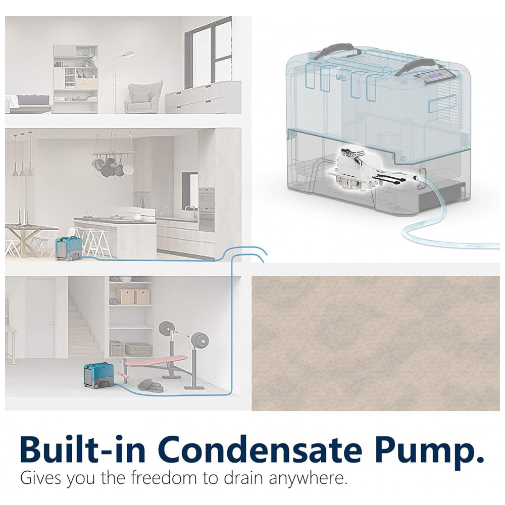 Controle via aplicativo, seque qualquer lugar MONITORE O PROCESSO DE RESTAURAÇÃO ONDE ESTIVER! Nosso aplicativo móvel gratuito AlorAir DryEasy está incluído na compra. O desumidificador comercial tem Capacidade de Remoção de Umidade de 85 litros em condições de saturação e 40 litros no AHAM com eficiência super alta, cabendo em espaços pequenos. Empilhável e compacto, transporte várias unidades em um carrinho. USO COMERCIAL, INDUSTRIAL e PESSOAL. Ideal para Limpeza de Carpetes, Porões, Lavanderias, Secagem, Escritórios, Laboratórios, Oficinas, Garagens. Design com armazenamento embarcado para cabo de energia de 5,97 metros e mangueira de drenagem de 5,97 metros. Controle por APP, Controlador Digital Automático de Umidade, Inicialização com Memória, Temporizador. Desumidificador Industrial com Bomba de Dreno, Reinício Automático após queda de energia. Display LCD simples exibe Temperatura e Umidade nas entradas e saídas. Testado para segurança elétrica ETL. Produto totalmente conforme. Aviso: Para determinar qual aplicativo baixar, verifique a data de fabricação na placa de dados da unidade.
