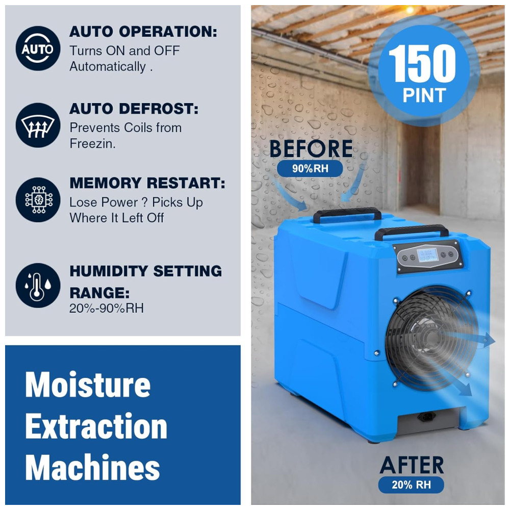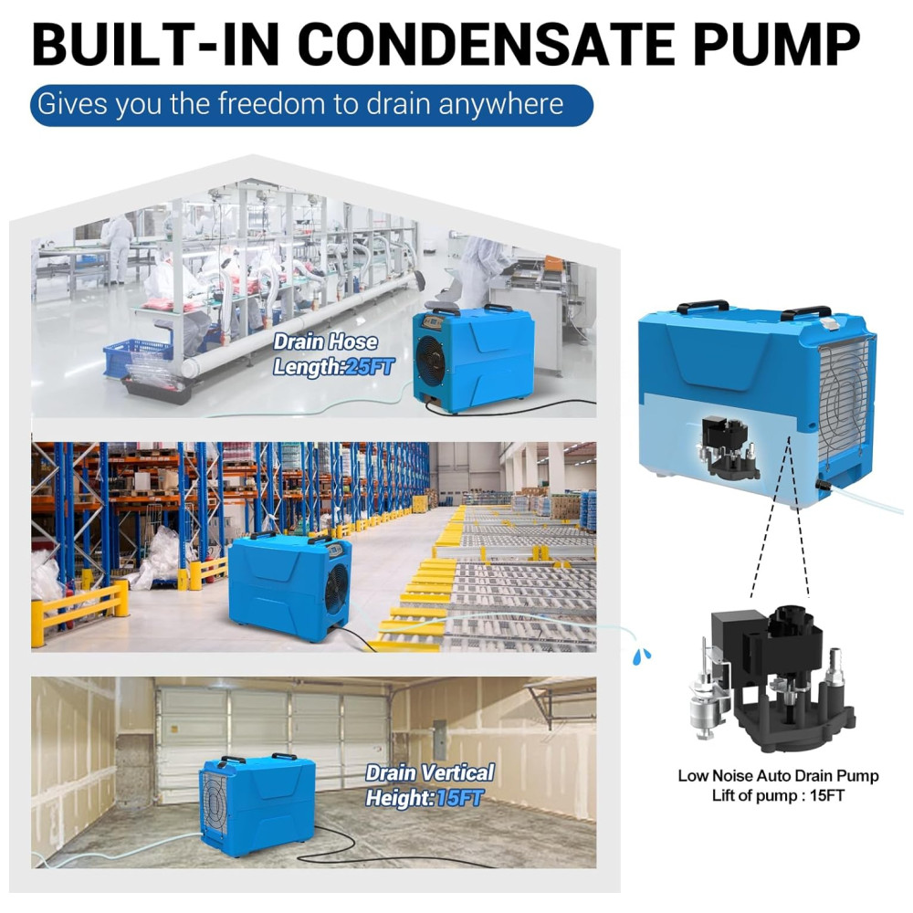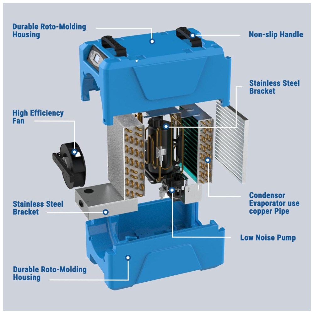 Desumidificador Comercial MOUNTO 7097 Litros de Capacidade Com Bomba para Drenagem de Água Ideal para Restauração de Danos por Água em Porões Armazéns e Locais
