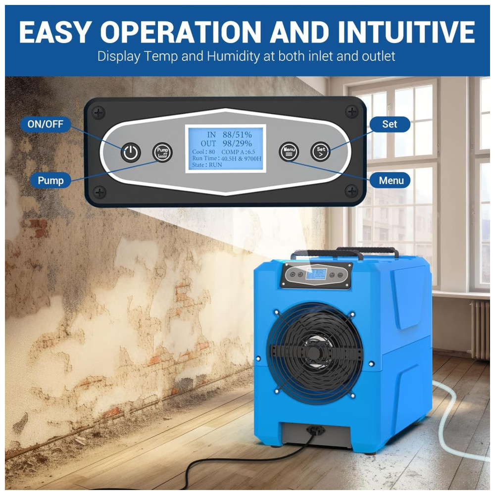 O desumidificador comercial LGR da MOUNTO, equipado com um compressor Panasonic, foi projetado para remover rapidamente o excesso de umidade do ar, sendo perfeito para projetos de restauração de danos causados pela água. Com capacidade de 37,85 litros por dia no AHAM e 70,97 por dia na saturação, este desumidificador é ideal para porões, armazéns e outros espaços comerciais grandes, garantindo um ambiente seco e confortável. Sua bomba integrada e função de reinício automático de memória asseguram uma operação contínua e ininterrupta, enquanto recursos como display LED, cabo de energia e mangueira de drenagem oferecem praticidade e flexibilidade durante a instalação.