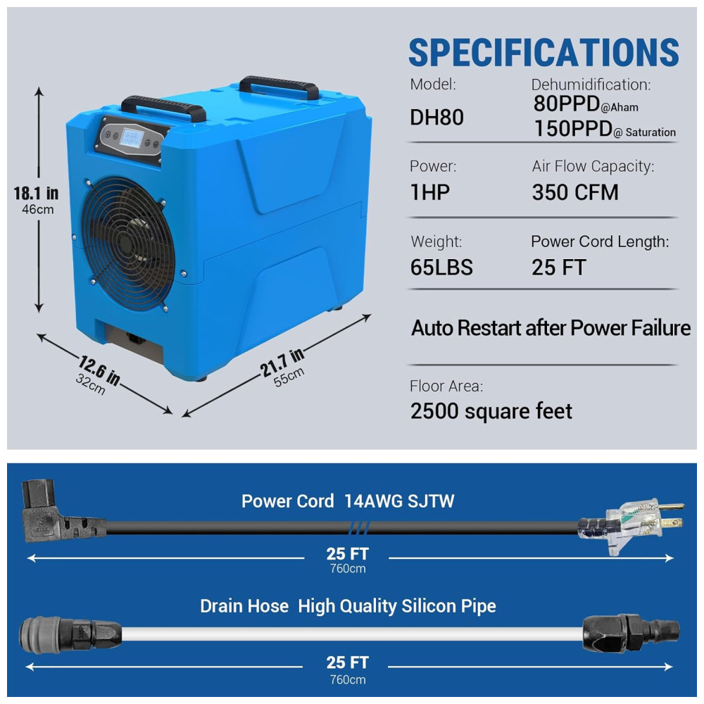 Usos Recomendados: Restauração de Danos por Água, Desumidificação de Construção, Porão, Estufa,