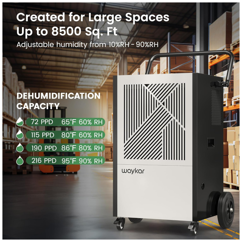 Desumidificador Comercial Waykar 10220 litros com Bomba Mangueira de Drenagem e Filtro Lavável – Até 809 metros quadrados